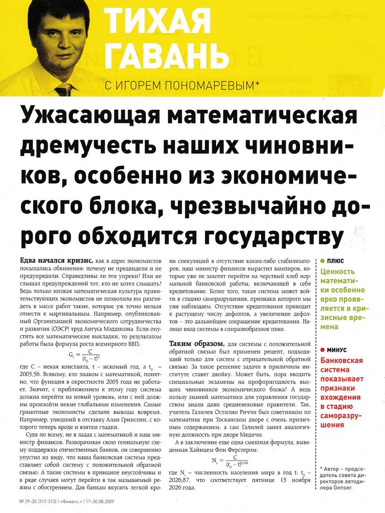 Во избежание экономических кризисов необходимо изгнать торгующих наукой математиков из храма Золотого Тельца. Они постоянно все портят