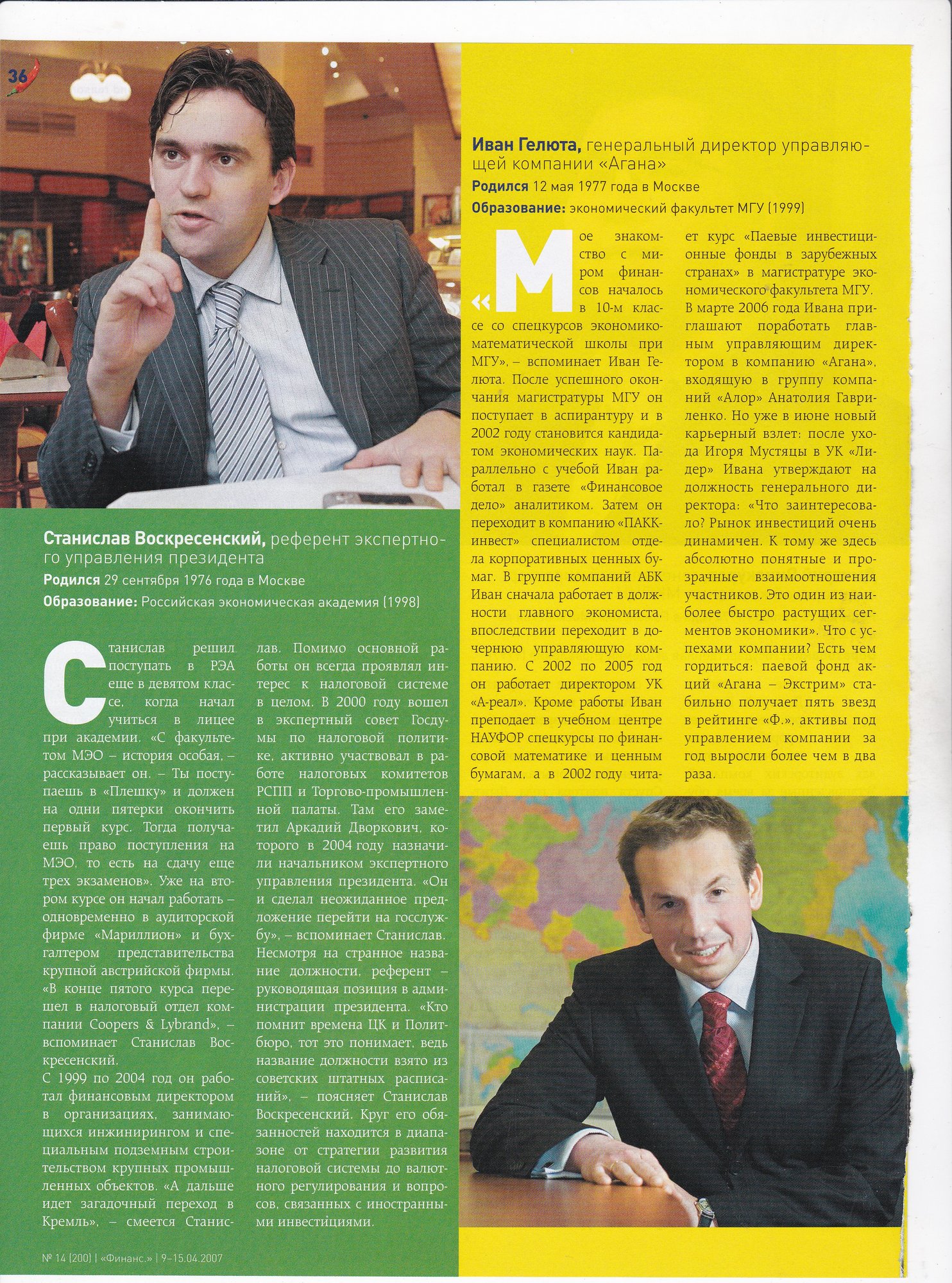 Мое знакомство с миром финансов началось в 10-м классе со спецкурсов экономико-математической школы при МГУ», – вспоминает Иван Гелюта. После успешного окончания магистратуры МГУ он поступает в аспирантуру и в 2002 году становится кандидатом экономических наук. Параллельно с учебой Иван работал в газете «Финансовое дело» аналитиком. Затем он переходит в компанию «ПАКК-инвест» специалистом отдела корпоративных ценных бумаг. В группе компаний АБК Иван сначала работает в должности главного экономиста, впоследствии переходит в дочернюю управляющую компанию. С 2002 по 2005 год он работает директором УК «А-реал». Кроме работы Иван преподает в учебном центре НАУФОР спецкурсы по финансовой математике и ценным бумагам, а в 2002 году читает курс «Паевые инвестиционные фонды в зарубежных странах» в магистратуре экономического факультета МГУ.