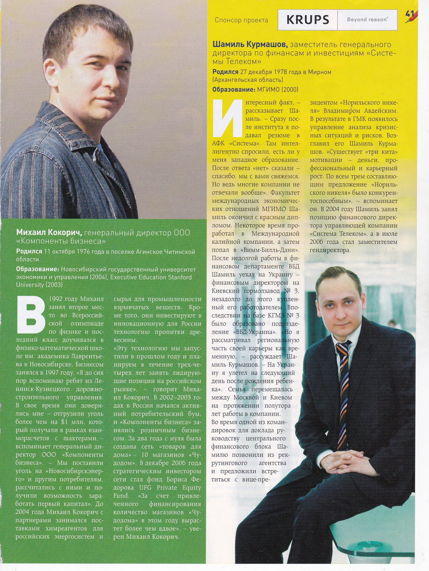 Поэтому в списке вы не найдете 29-летнего генерального директора «Системы-галс» Феликса Евтушенкова, 30-летнего владельца нескольких финансовых компаний Александра Гайдамака, 32-летнего банкира Алексея Титова. О них мы расскажем отдельно.