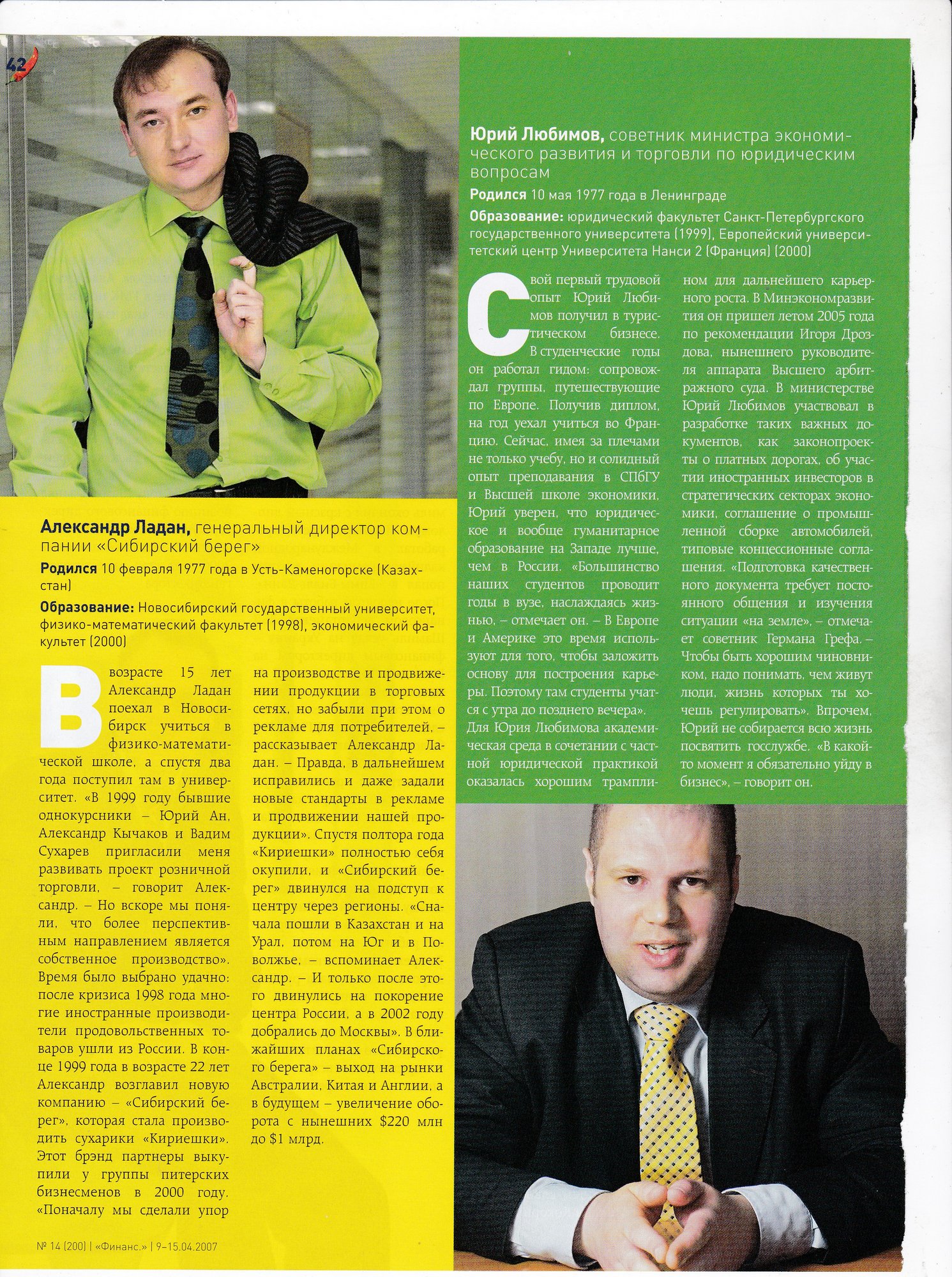 В Министерстве экономического развития и торговли РФ работают советник Германа Грефа Юрий Любимов (стр. 42) и директор департамента стратегии социально-экономических реформ Минэкономразвития Саид Баткибеков (стр. 33). Администрацию президента представляет референт экспертного управления Станислав Воскресенский (стр. 36). Именно этот человек разрабатывает изменения в российском налоговом законодательстве.