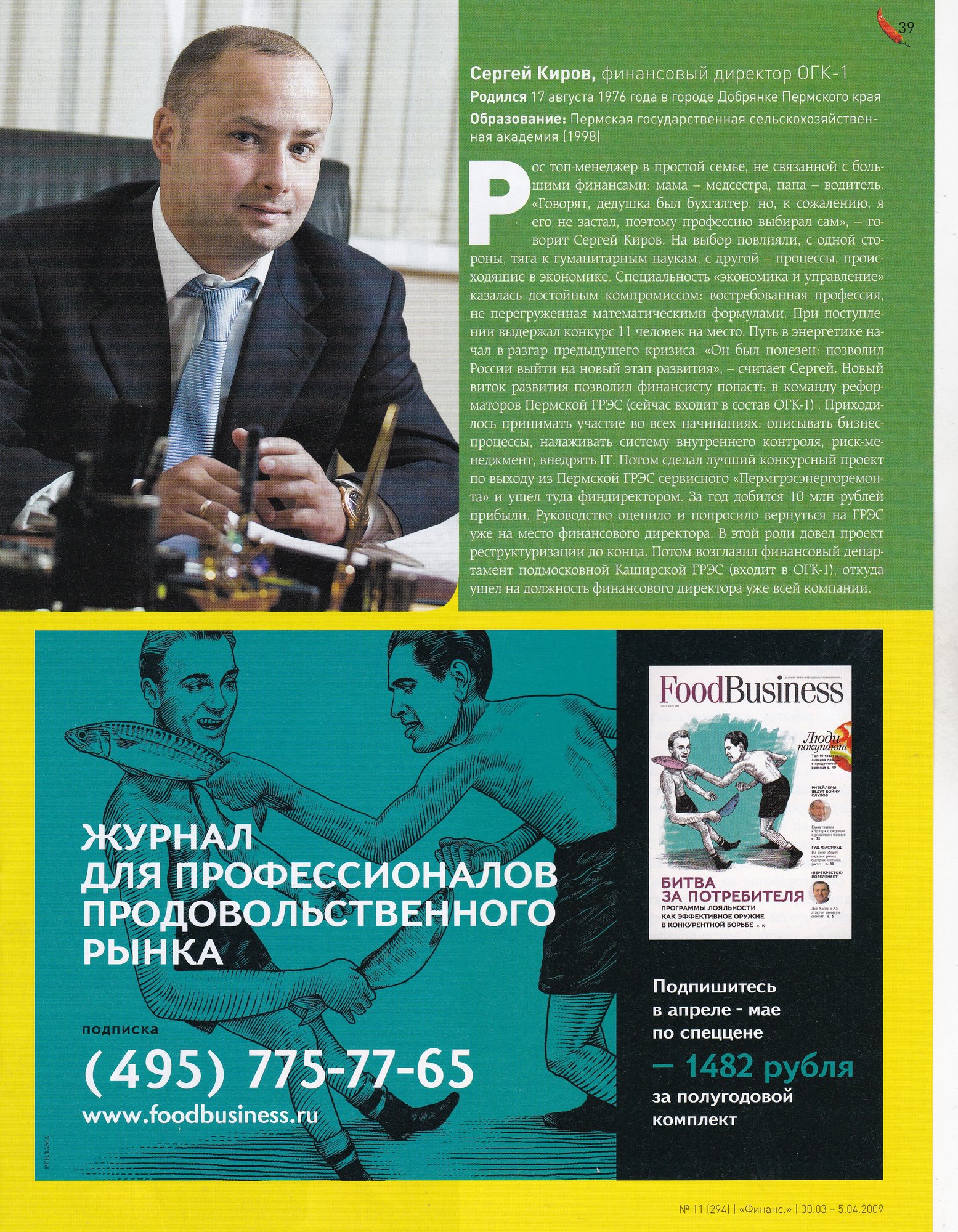 Рос топ-менеджер в простой семье, не связанной с большими финансами: мама – медсестра, папа – водитель. «Говорят, дедушка был бухгалтер, но, к сожалению, я его не застал, поэтому профессию выбирал сам», – говорит Сергей Киров. На выбор повлияли, с одной стороны, тяга к гуманитарным наукам, с другой – процессы, происходящие в экономике. Специальность «экономика и управление» казалась достойным компромиссом: востребованная профессия, не перегруженная математическими формулами. При поступлении выдержал конкурс 11 человек на место. Путь в энергетике начал в разгар предыдущего кризиса. «Он был полезен: позволил России выйти на новый этап развития», – считает Сергей. Новый виток развития позволил финансисту попасть в команду реформаторов Пермской ГРЭС (сейчас входит в состав ОГК-1) . Приходилось принимать участие во всех начинаниях: описывать бизнес-процессы, налаживать систему внутреннего контроля, риск-менеджмент, внедрять IT. Потом сделал лучший конкурсный проект по выходу из Пермской ГРЭС сервисного «Пермгрэсэнергоремонта» и ушел туда финдиректором. За год добился 10 млн рублей прибыли. Руководство оценило и попросило вернуться на ГРЭС уже на место финансового директора. В этой роли довел проект реструктуризации до конца. Потом возглавил финансовый департамент подмосковной Каширской ГРЭС (входит в ОГК-1), откуда ушел на должность финансового директора уже всей компании.