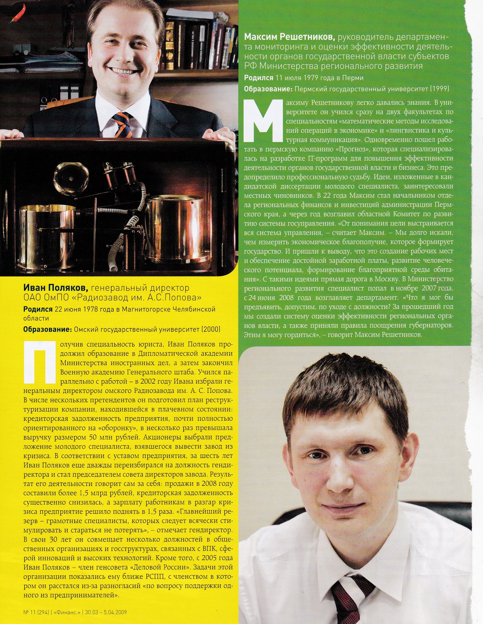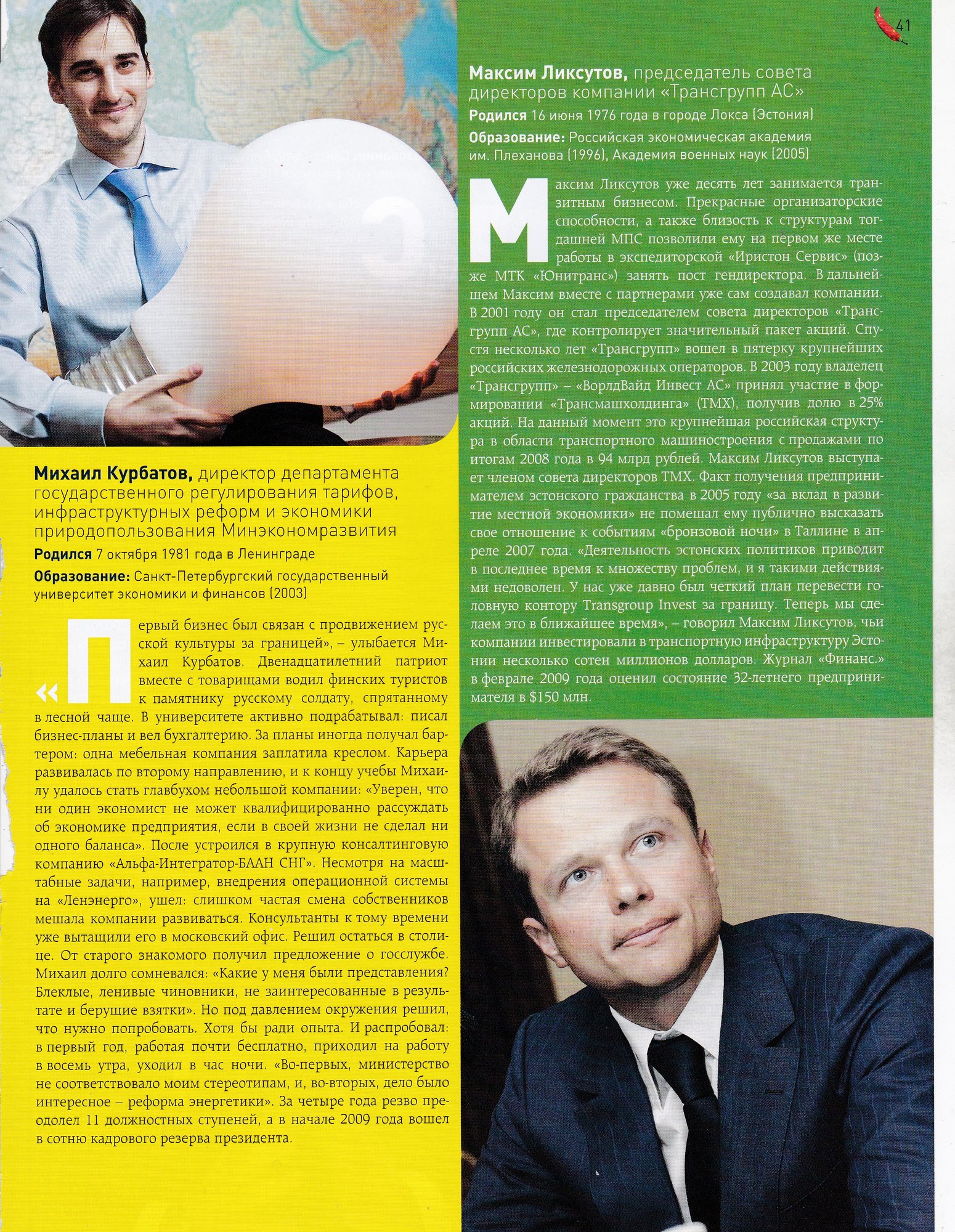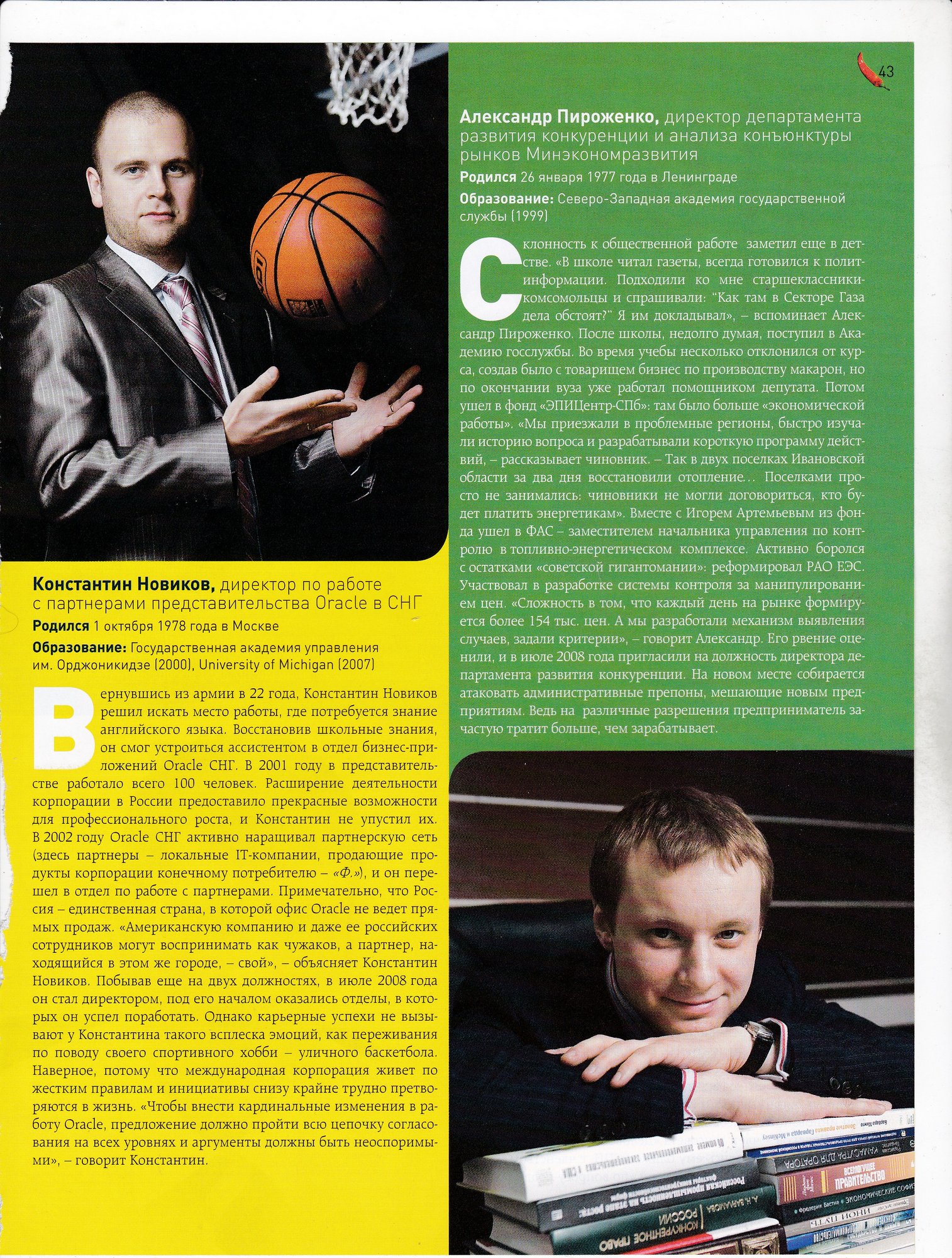 Зато сформировать список помог президент Дмитрий Медведев, озвучивший сотню своего кадрового резерва. Там не так много людей до 33 лет, из них мы выбрали трех директоров департаментов: Михаила Курбатова (стр. 41) и Олега Фомичева (стр. 49) из Минэкономразвития и Максима Решетникова из Минрегиона (стр. 44).