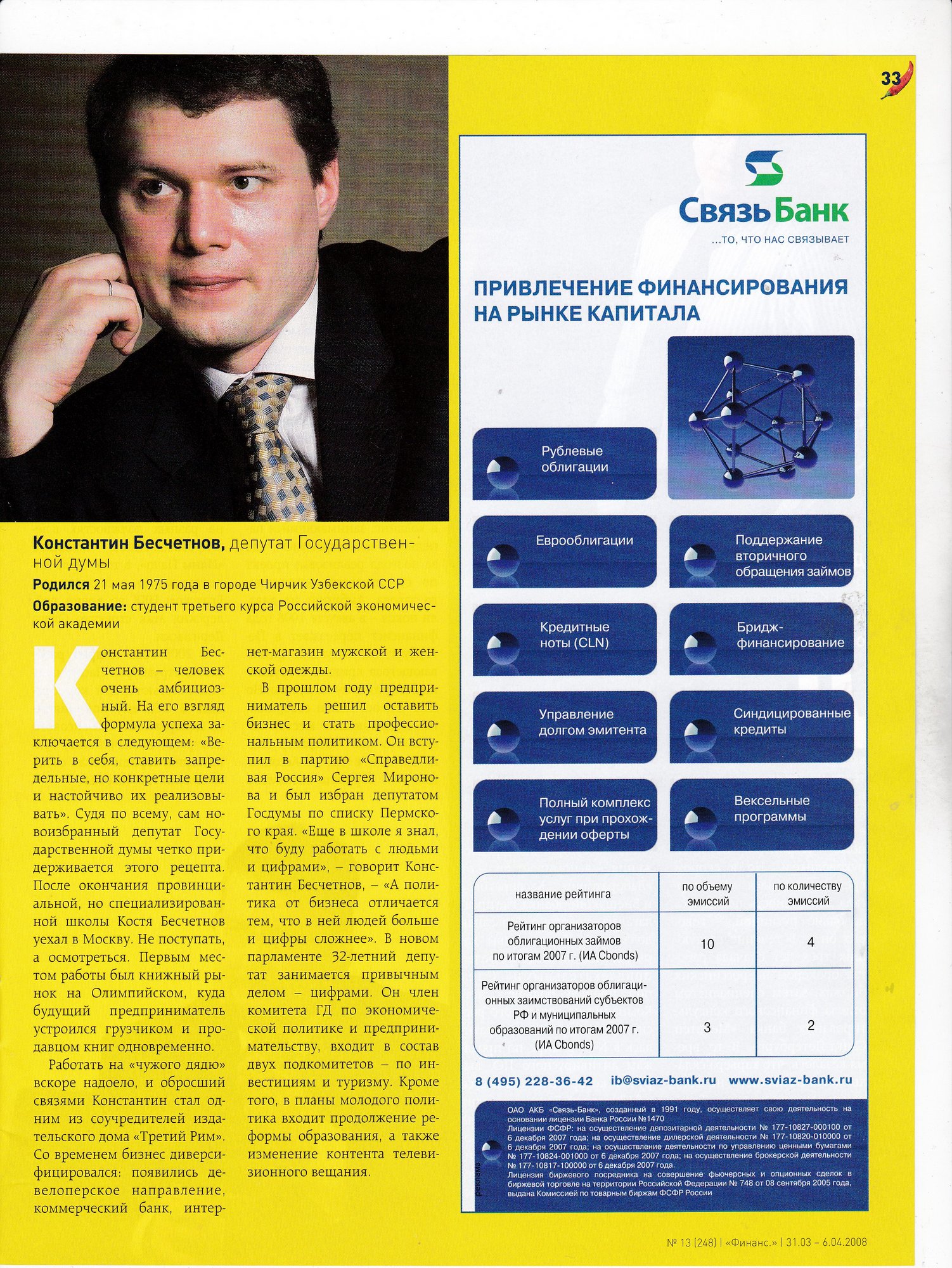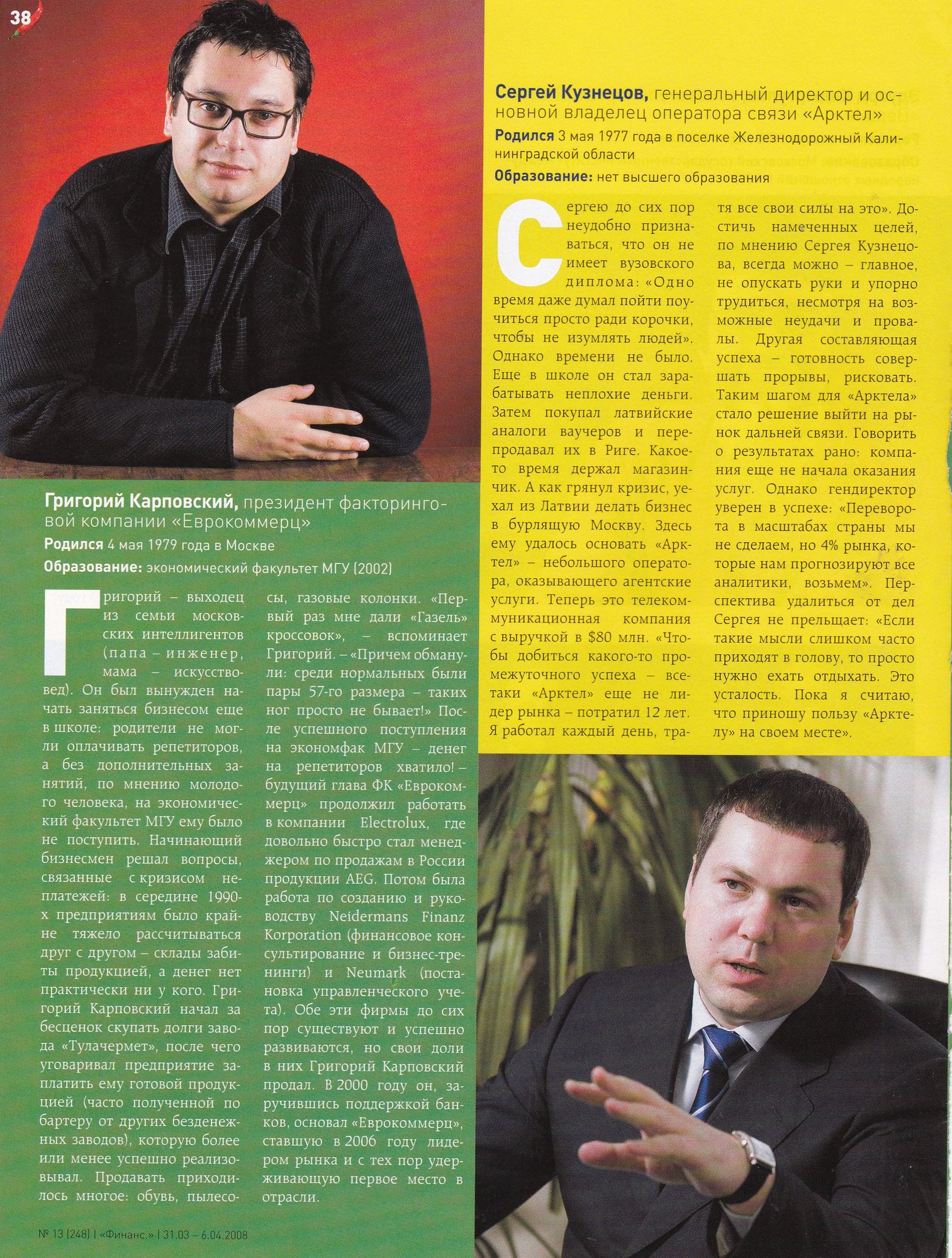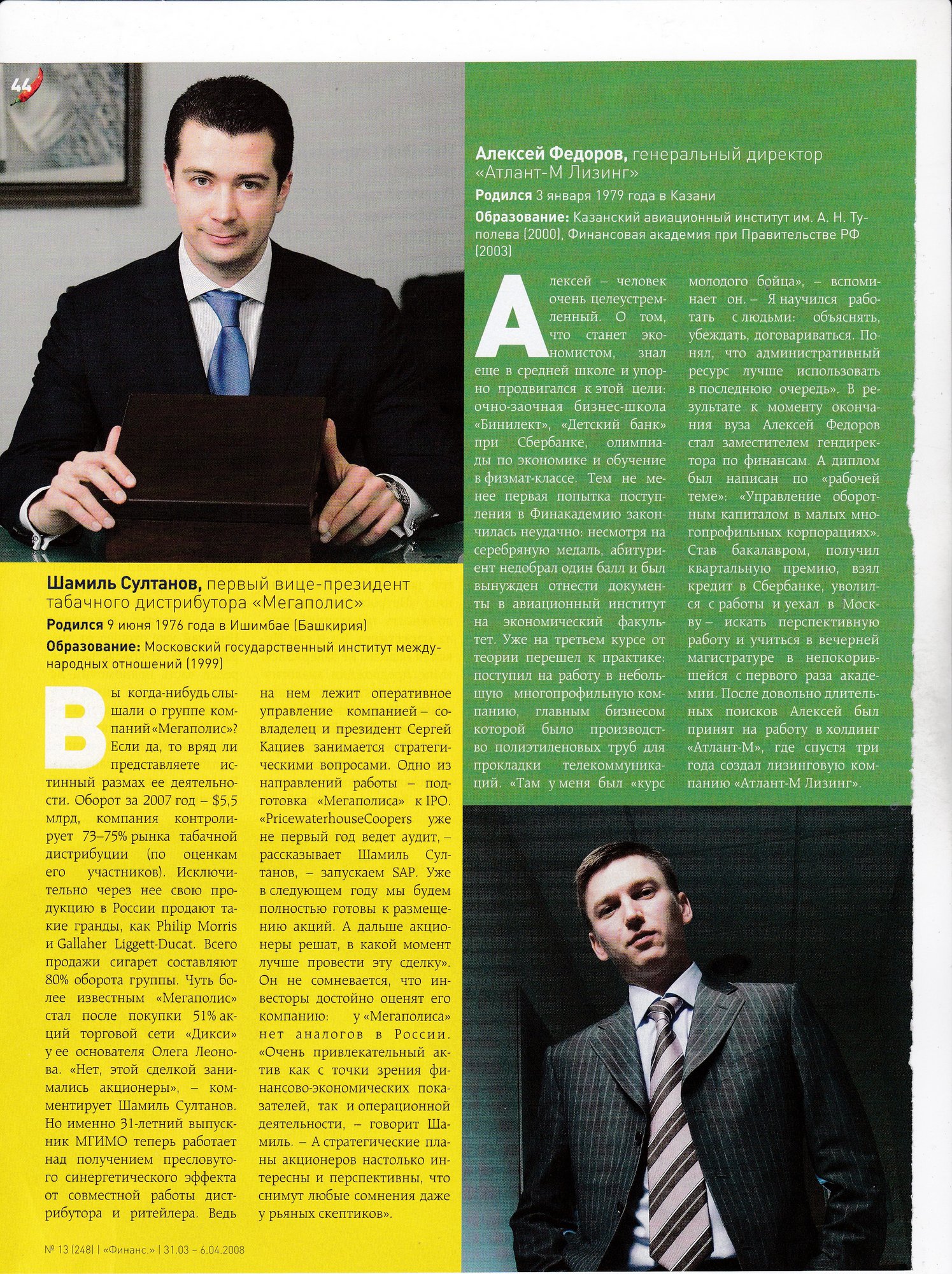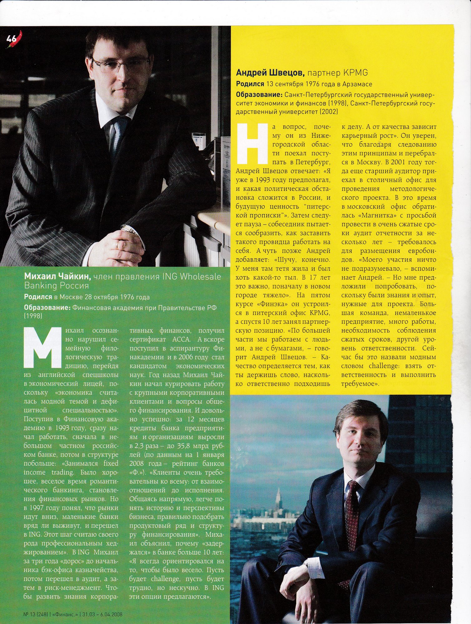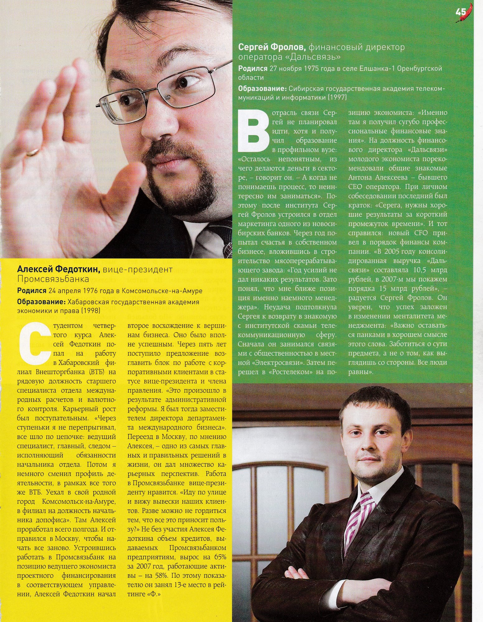 С 2003 по 2010 год мне посчастливилось работать главным редактором журнала «Финанс.». Среди массы интересных проектов был список «33 перца», в который мы ежегодно включали (и не чаще одного раза) мужчин из области бизнеса/управления, которым на дату выхода журнала из печати не исполнилось ещё 33 лет. Здесь я собрал 165 интересных людей, попадавших в список в 2006-2010 годах.
