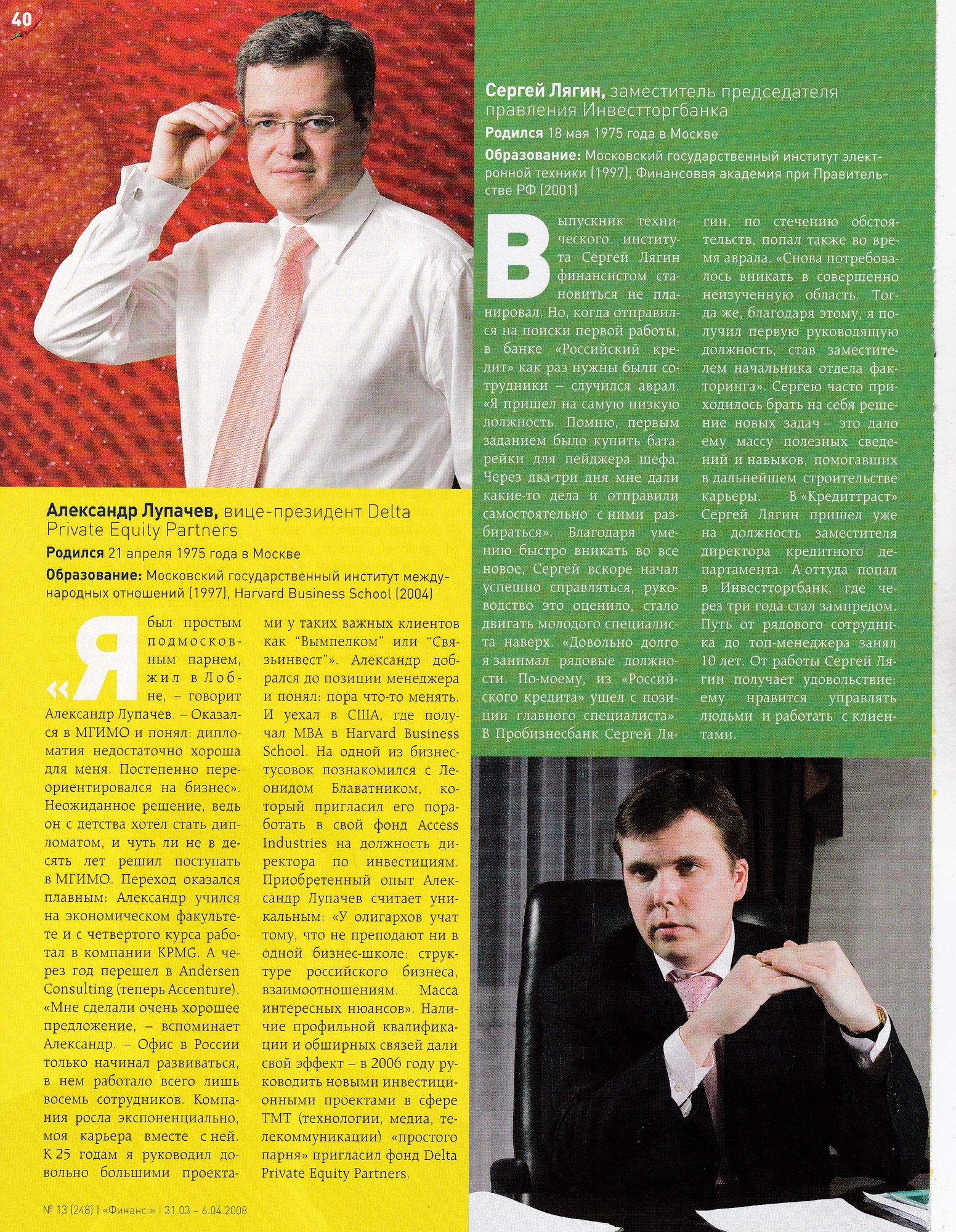 Поступив на юрфак, Алексей сразу же пошел работать – в школу преподавателем английского языка. На третьем курсе устроился юристом в местный офис швейцарской компании RCF Corporate Finance. И больше оттуда не уходил: правда, структура несколько раз меняла название, совладельцев, направления деятельности, но костяк команды оставался тем же. Поначалу молодой юрист анализировал международные договоры и познавал премудрости синдицированных кредитов. Быстро дорос до замдиректора офиса и прекрасно помнит тот момент, когда охладел к учебе. Приехал в университет с копией контракта на $30 млн в портфеле и был вынужден писать сочинение на немецком на тему «Как я провел лето». После дефолта 1998-го пути российского офиса с материнской организацией разошлись. И выкристаллизовалось новое направление деятельности – проектное финансирование. Акцент в работе Алексея сместился в сторону финансов. В 2003 году начался новый этап – партнерство с Национальным резервным банком и переименование в «НРБ Финансы». В качестве исполнительного директора Алексей Прудников вел все крупные проекты, в частности, создание Национальной ипотечной компании, финансирование «Скай Линка» и предприятий «Связьинвеста». «Через несколько лет мы поняли, что непросто развивать бизнес, будучи миноритарием», – объясняет он причины «развода» с НРБ. Так в 2007-м появилась ГК «Финематика». В кризис ее штат сократился. Но в конце 2009-го на рынке почувствовалось оживление. «Банки-партнеры стали к нам обращаться: «С остатками проблемных активов сами разберемся, помогите найти клиентов и перспективные проекты». Появляются деньги, лимиты, возможности», – говорит Алексей Прудников.