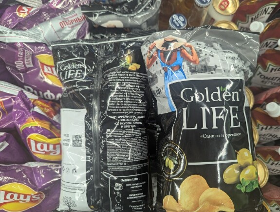 Сколько по телевизору не говори про загнивание, а «золотая жизнь» всё равно ассоциируется в Европой, оливками и орегано, а не Колымой, тушёнкой и гречкой. Попытка создать новый бренд от ООО «Московский картофель» (Калужская область).