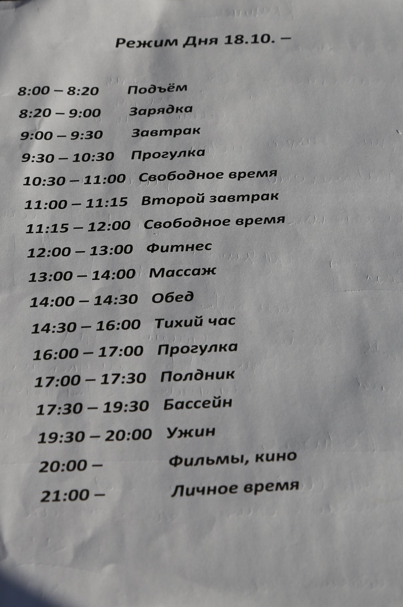 Для каждого пациента разрабатывается личный режим дня, с грамотным чередованием физических нагрузок, отдыха, приёма пищи.