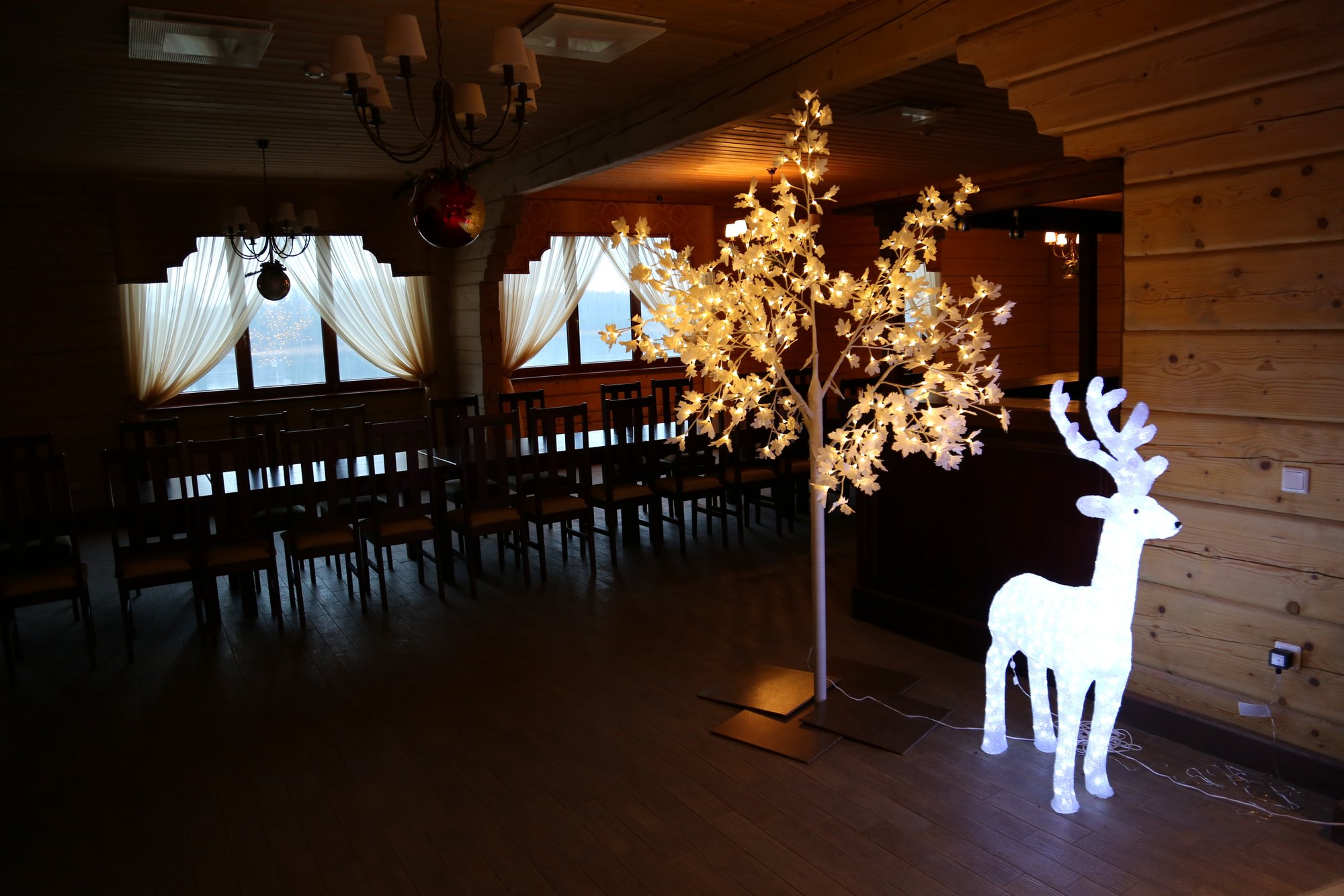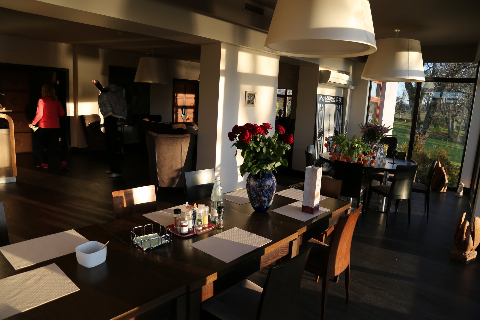 Четыре приёма пищи проходят в красивой столовой на первом этаже отеля: