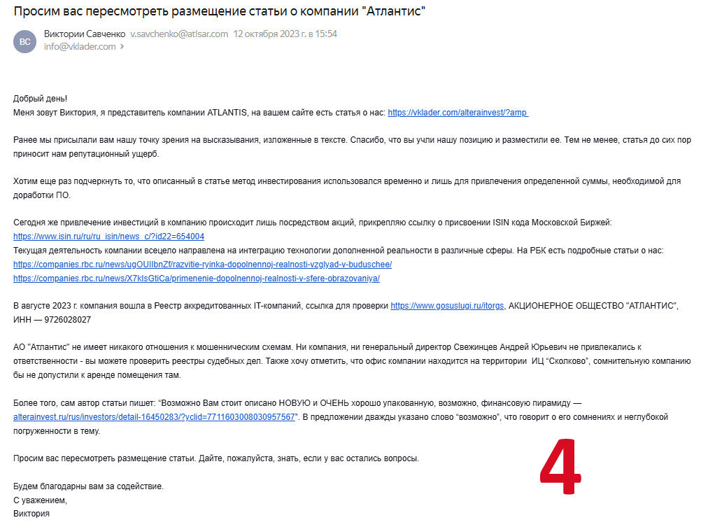 Ниже письма, которые эти деятели писали мне, чтобы я убрал предупредительную публикацию. Разумеется, я этого не сделал, спася таким образом деньги многих «инвесторов». Тем не менее, есть и пострадавшие, потерявшие много десятков миллионов рублей.