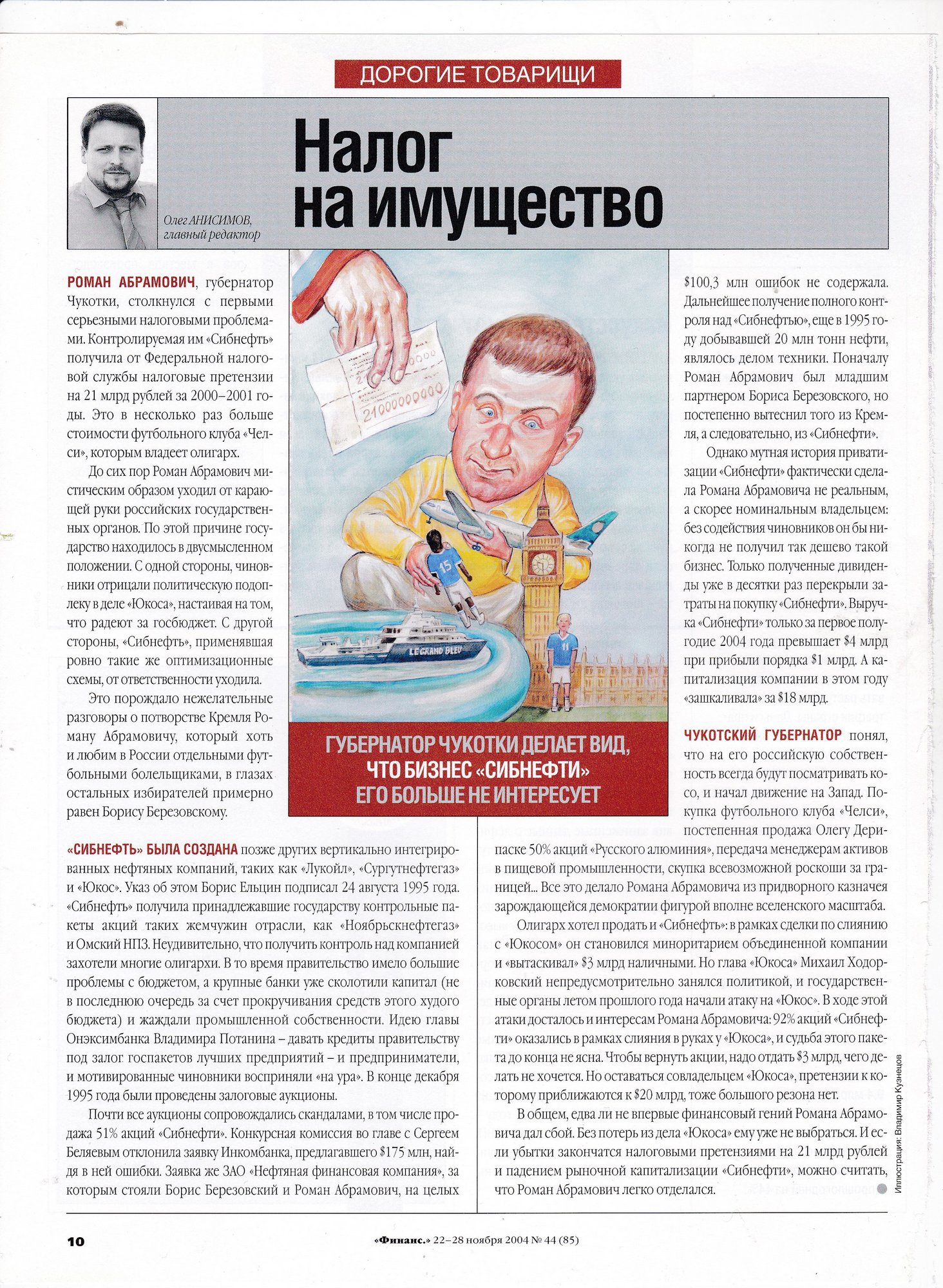 Однако мутная история приватизации «Сибнефти» фактически сделала Романа Абрамовича не реальным, а скорее номинальным владельцем: без содействия чиновников он бы никогда не получил так дешево такой бизнес. Только полученные дивиденды уже в десятки раз перекрыли затраты на покупку «Сибнефти». Выручка «Сибнефти» только за первое полугодие 2004 года превышает $4 млрд при прибыли порядка $1 млрд. А капитализация компании в этом году «зашкаливала» за $18 млрд.