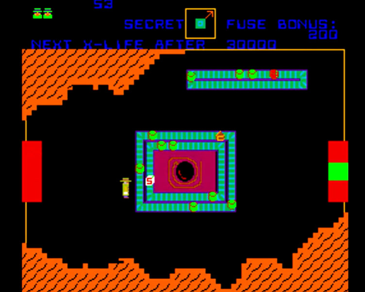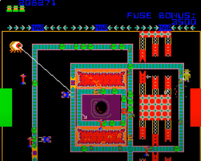 Каждый четвёртый лабиринт представляет собой «Power Plant» (реактор) или «Central Computer» — объекты, взрывающиеся при задержке, и из которых исходят бомбы или электрические угрозы. На этих уровнях действительно можно стрелять по объектам (реактору/заводу), чтобы обезвредить угрозу. Хотя в Frenzy нет лифта, наличие 33 «этажей» и конвейеров с бомбами соответствует структуре «каждого четвёртого» уровня с особенным объектом (реактором). Если вас смущает отсутствие лифта в Frenzy, возможно, игра существовала в другой автоматной версии или местной неофициальной аракадной сборке. Но по описанию — лабиринты, конвейеры с бомбами, реактор, четвёртый уровень — это практически все ключевые элементы Frenzy.