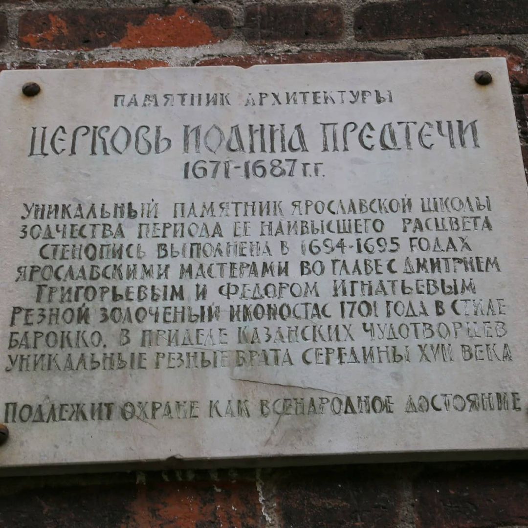 Храм Иоанна Предтечи (1671-1687 гг.) — задумывался и строился как нечто особенное, «чего прежде никогда не было», поэтому с момента закладки сопровождался большим количеством вкладов и пожертвований, поражая богатством внутреннего убранства и количеством драгоценной утвари.