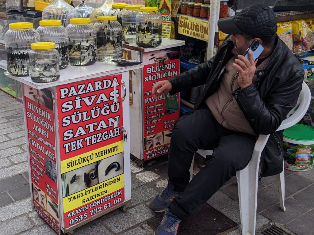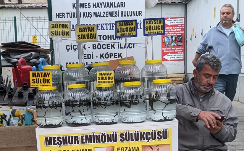 С удивлением в Турции увидел, как на улице продают пиявок.
