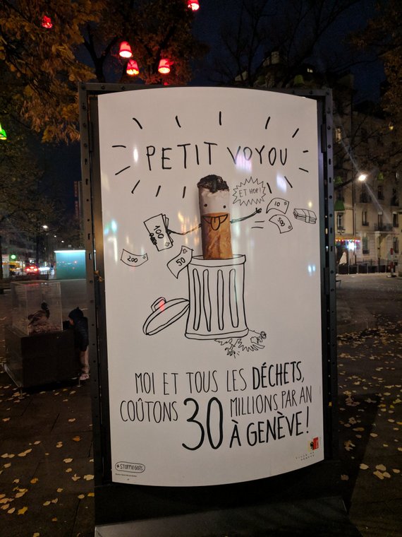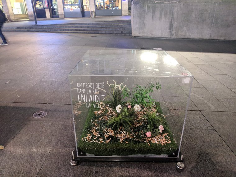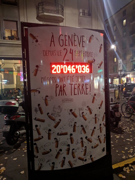 Жители Женевы бросают слишком много окурков на улицах, и дешевле убеждать их этого не делать, чем платить дополнительные деньги за уборку.