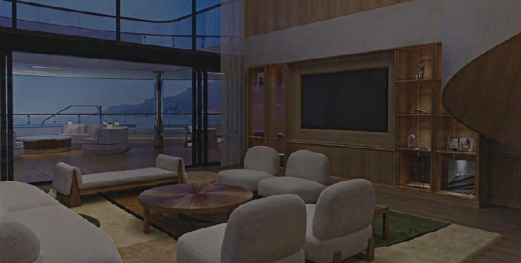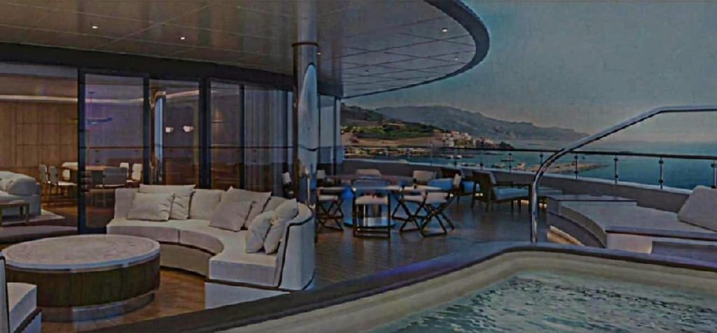 Это не часть корпуса, а отдельный модуль, который ставят на воде рядом/за кормой, чтобы расширить «пляж» у яхты.
