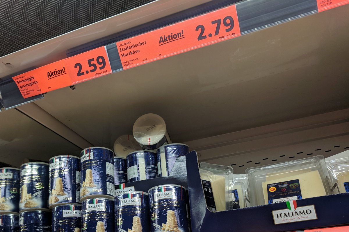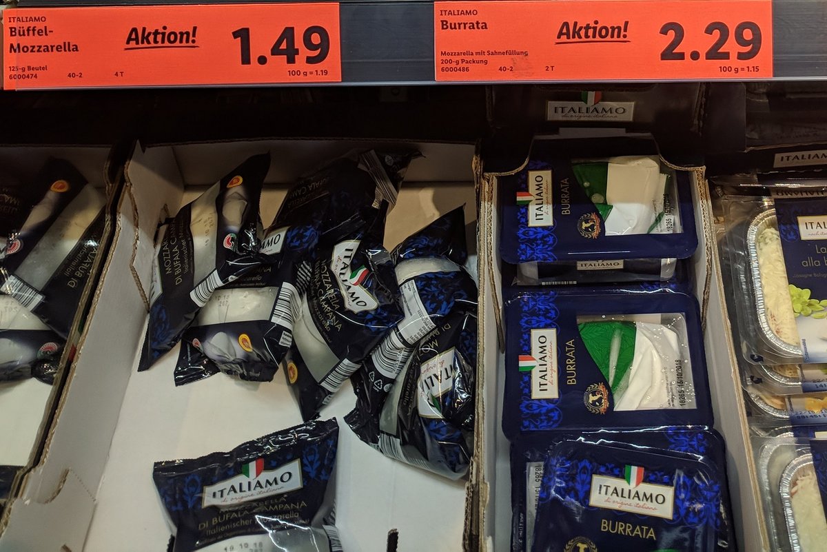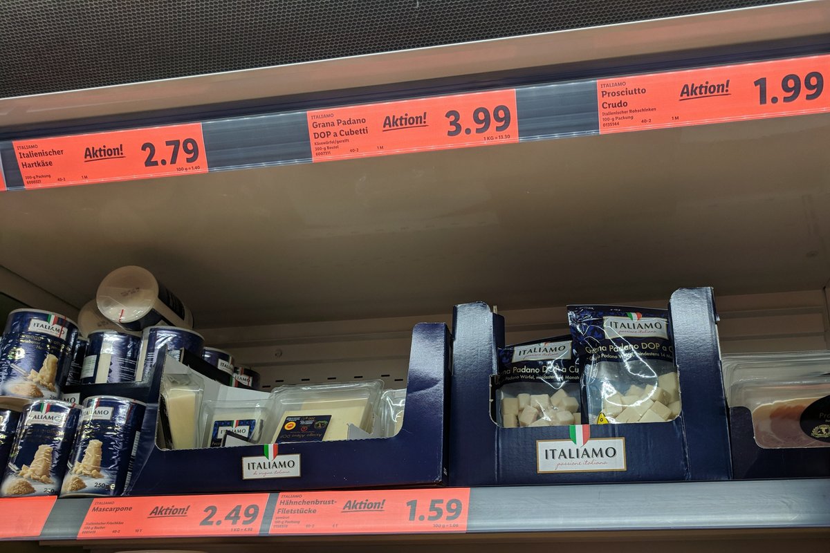 Буррата по 11 евро за килограмм. Грана Падано за 13 евро килограмм. Брунелло Ди Монтальчино за 13 евро бутылка.