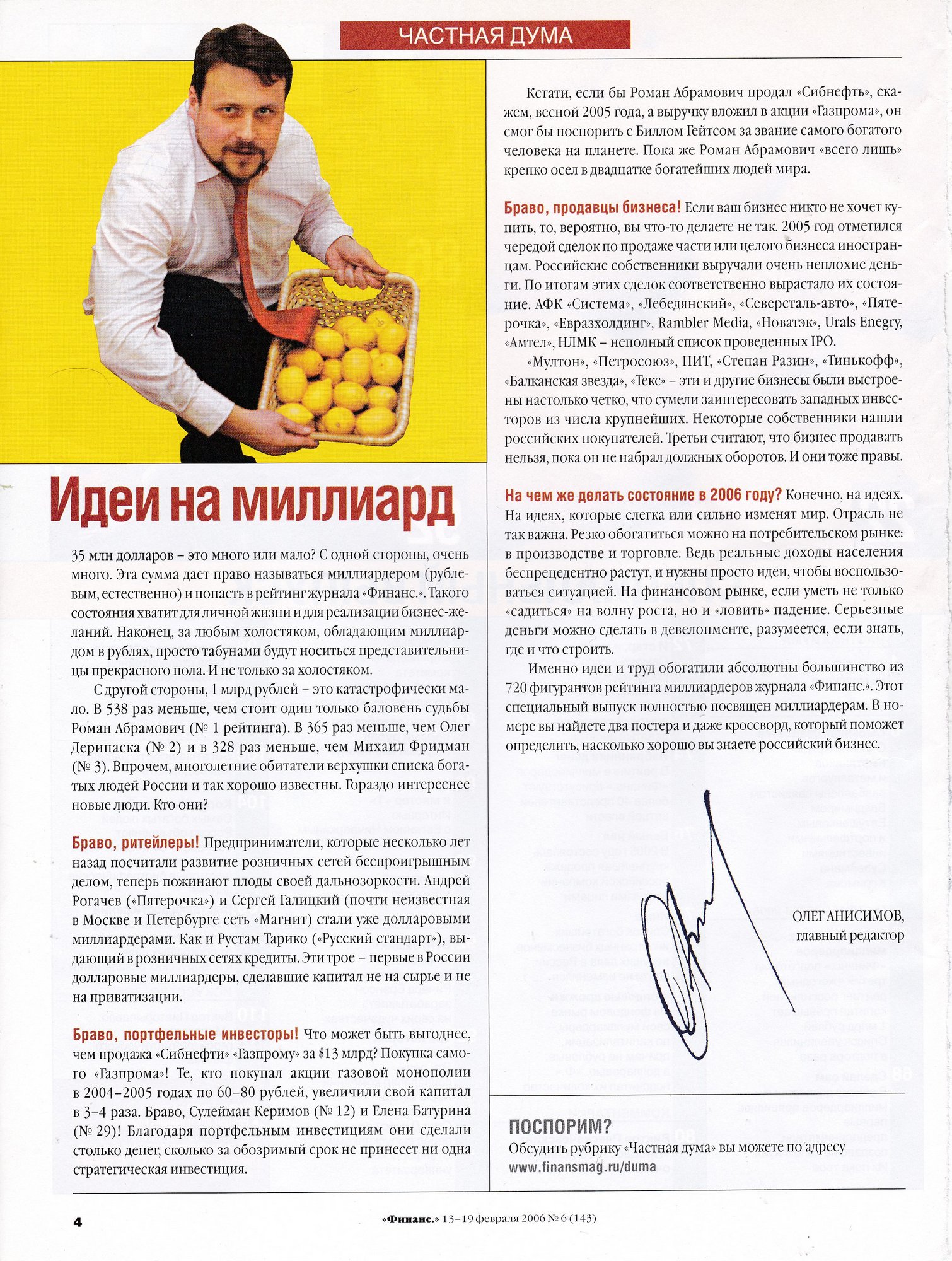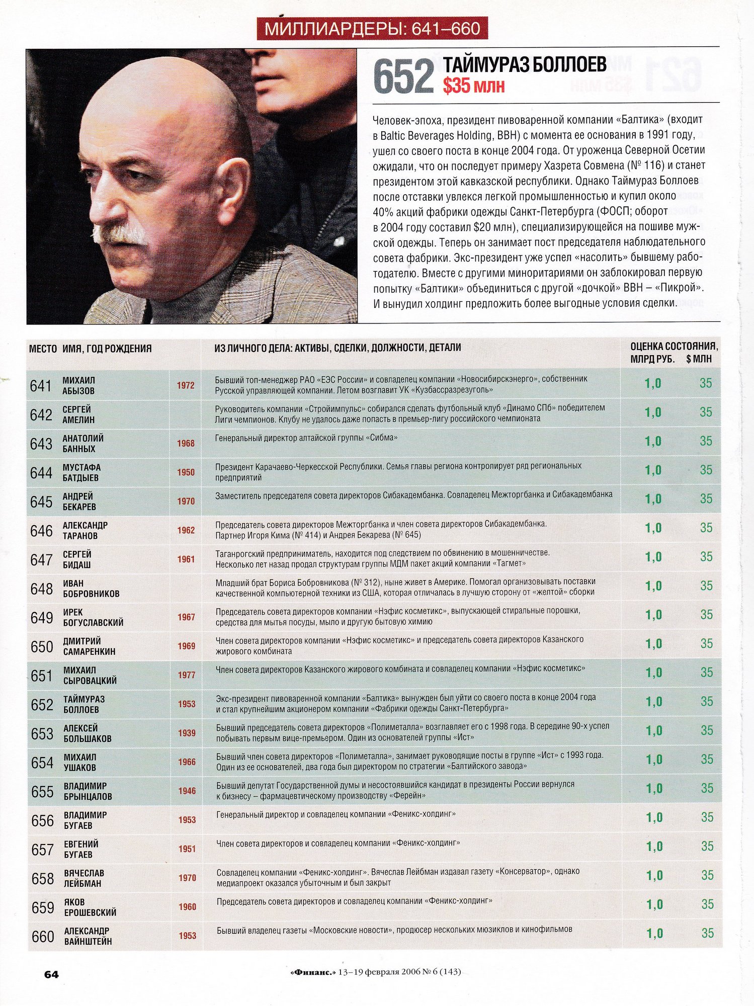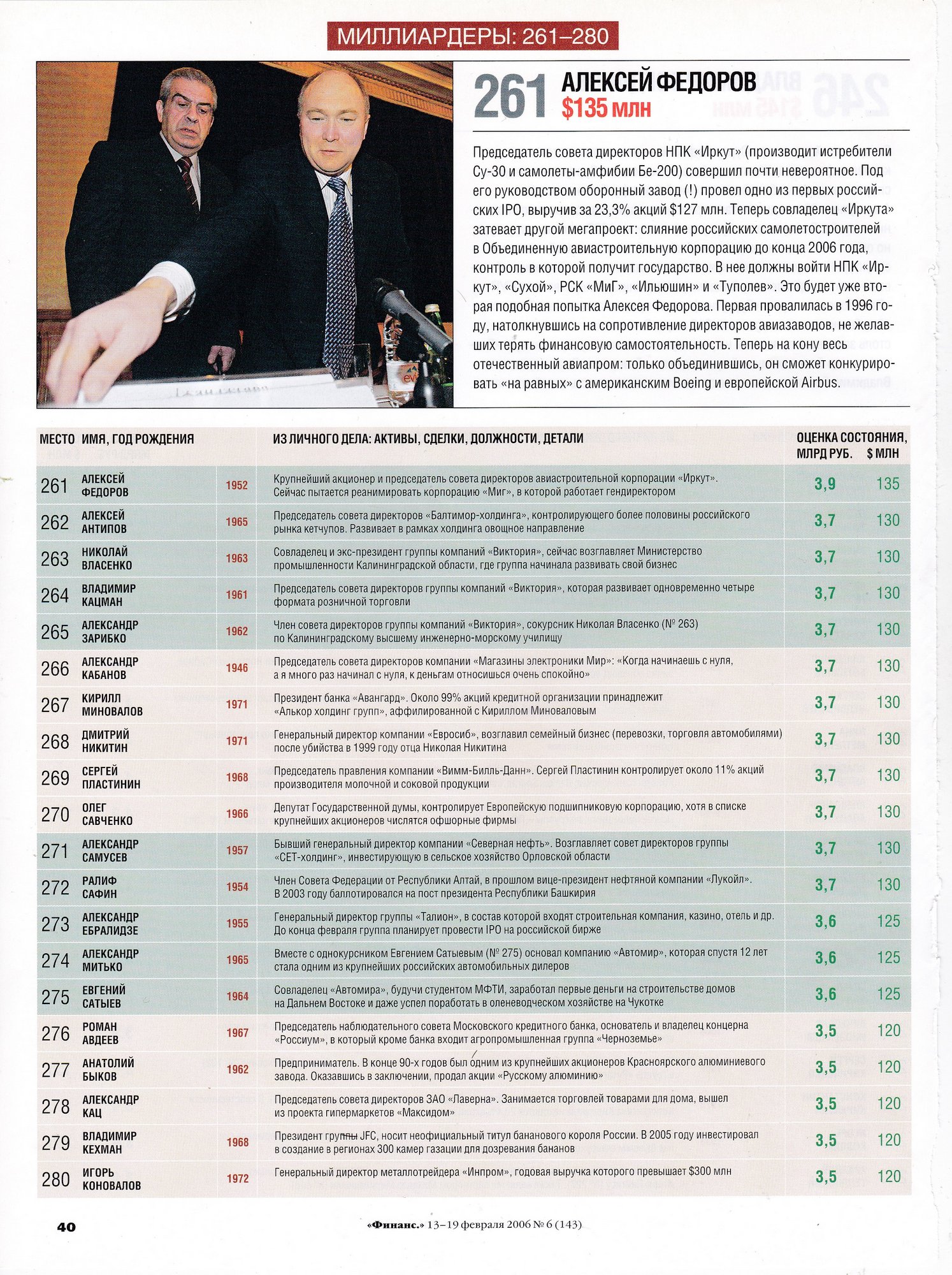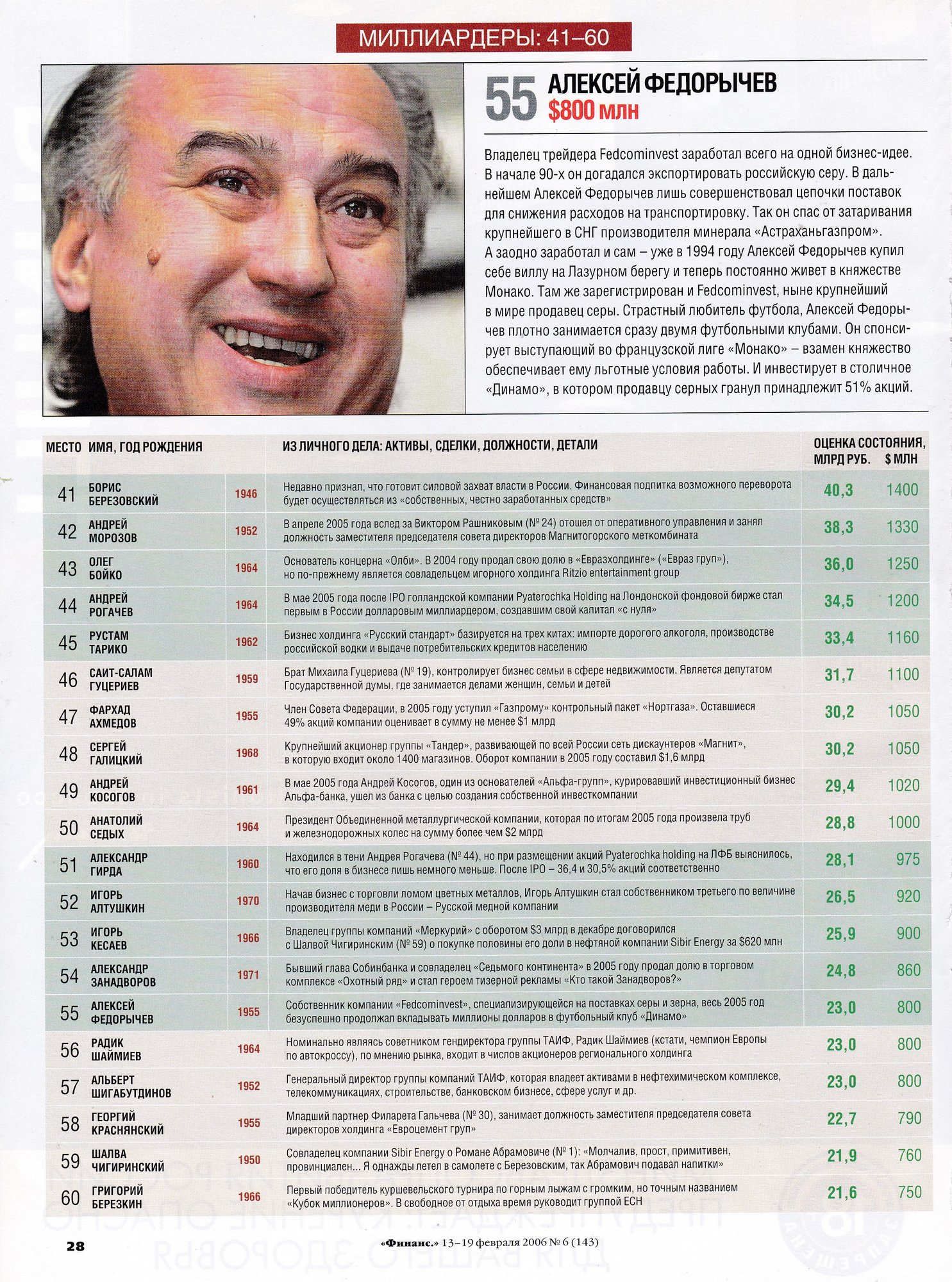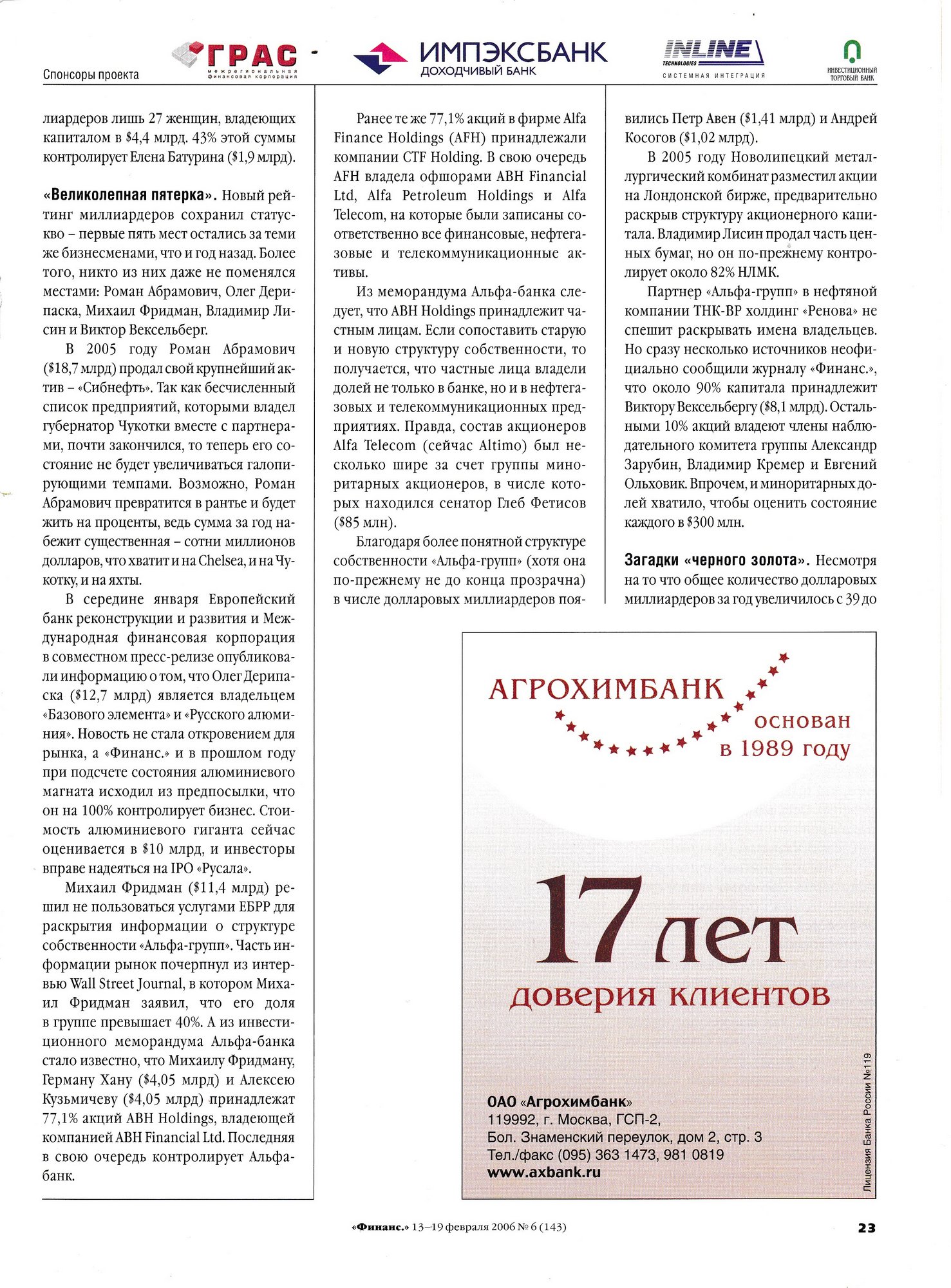 Журнал «Финанс.» №6 (143) 13-19 февраля 2006 — Миллиардеры-2006