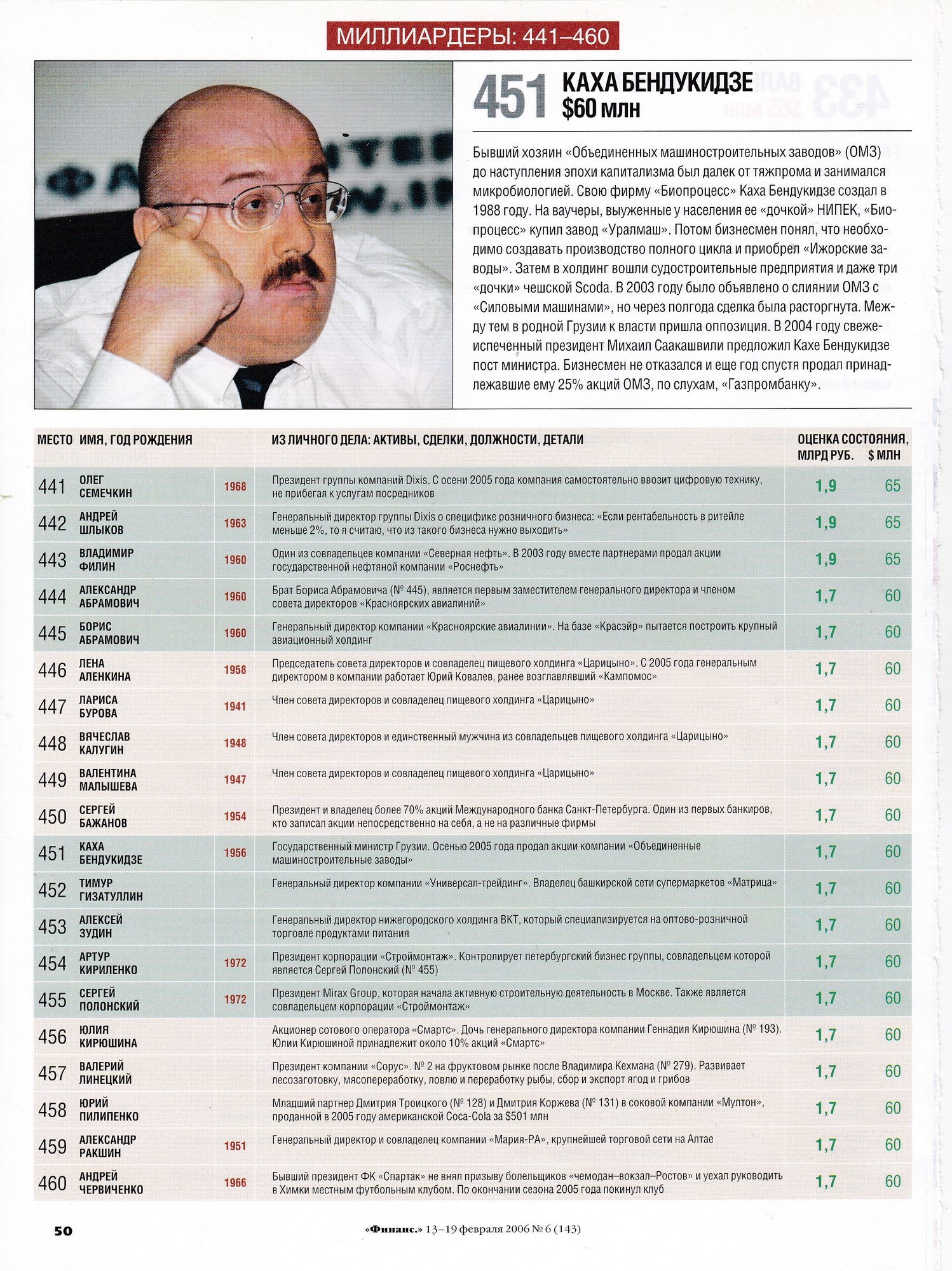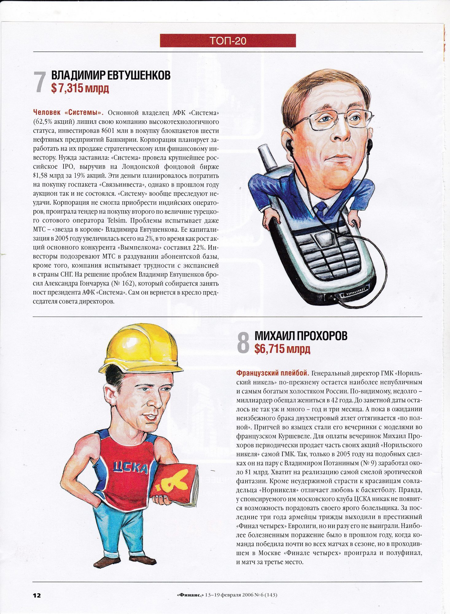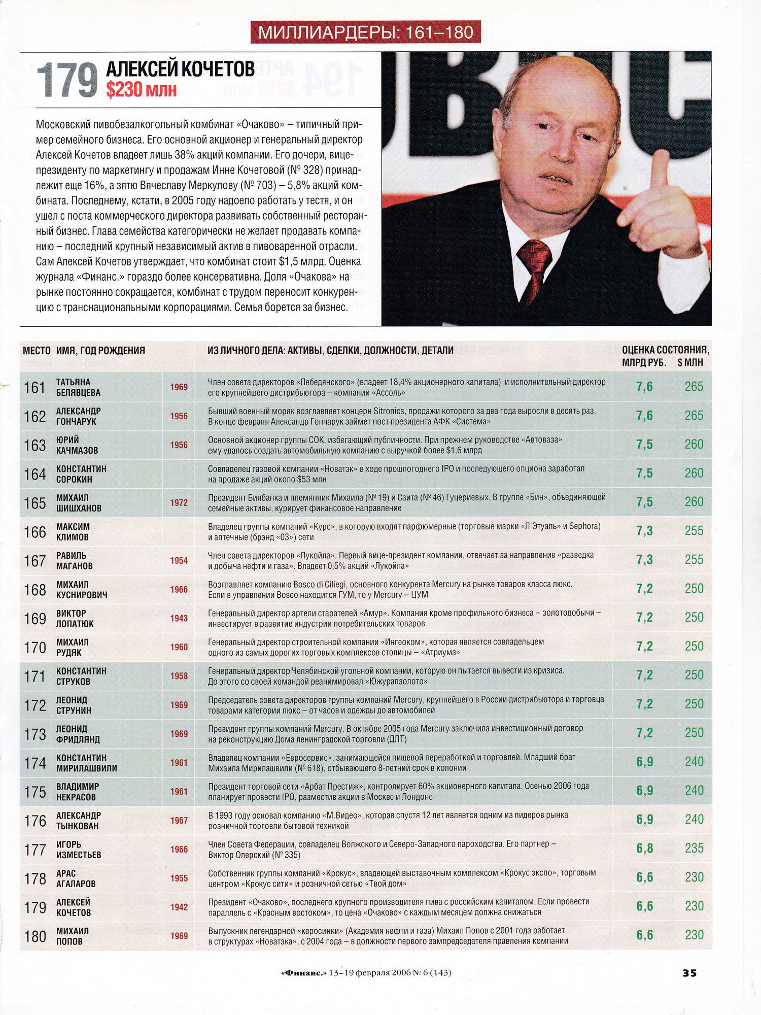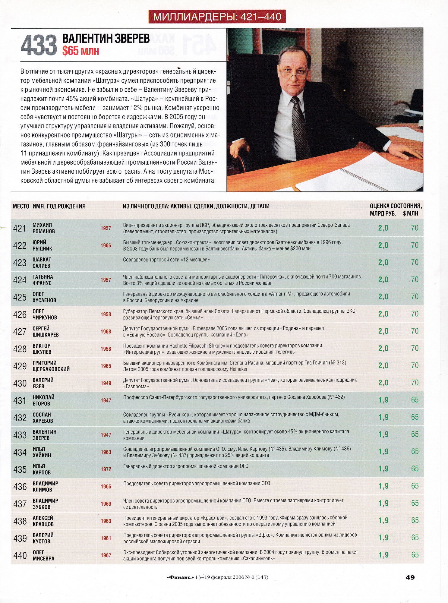 Журнал «Финанс.» №6 (143) 13-19 февраля 2006 — Миллиардеры-2006