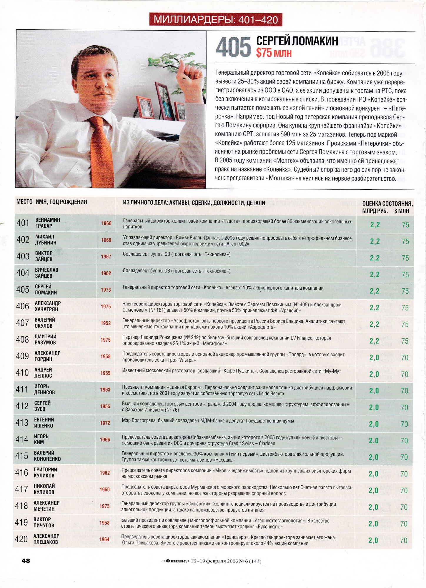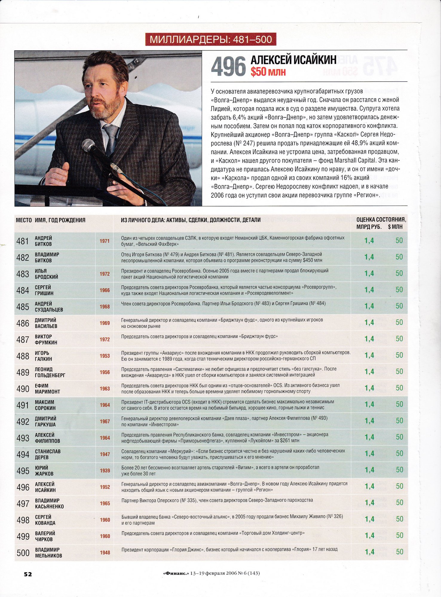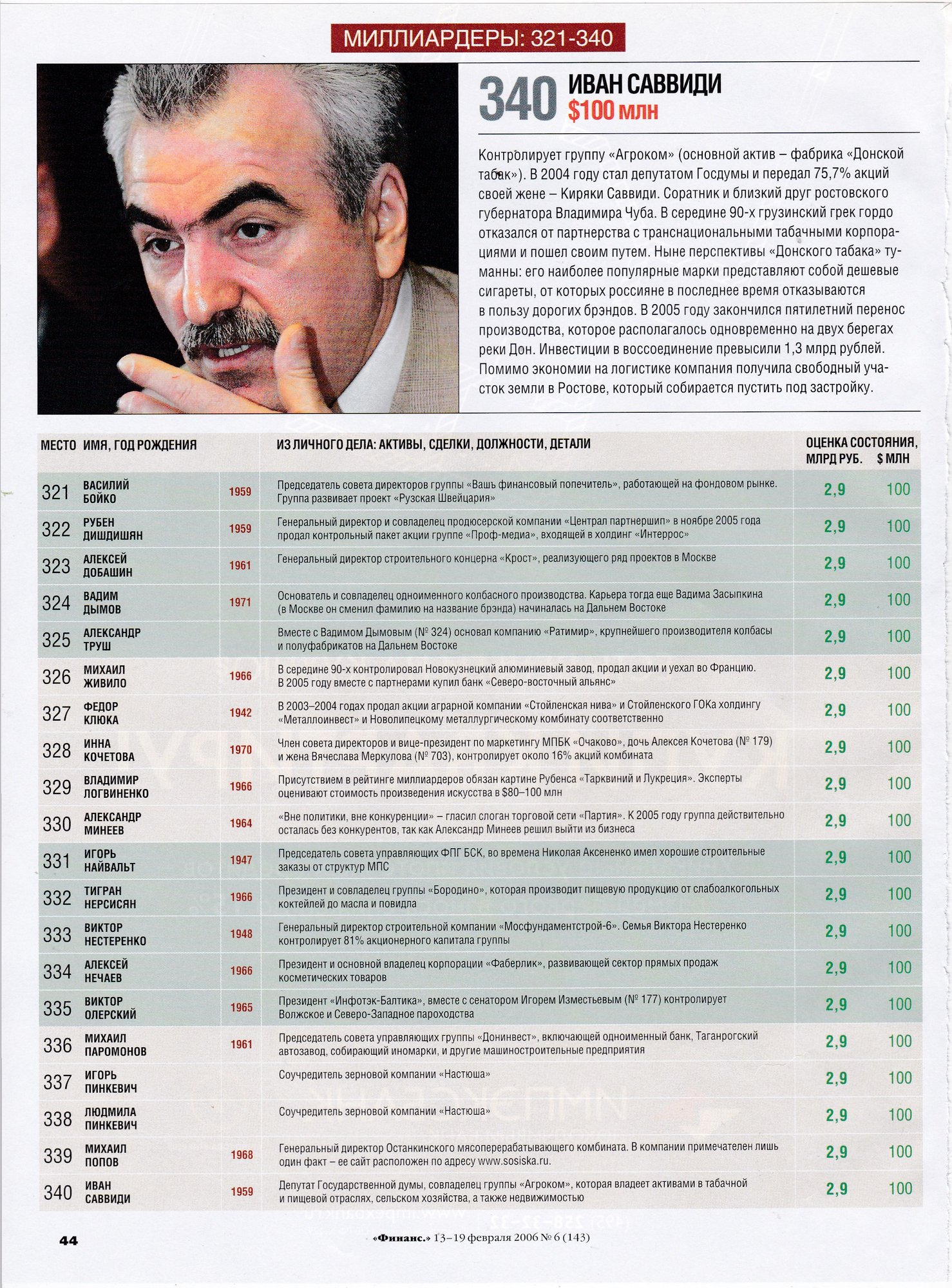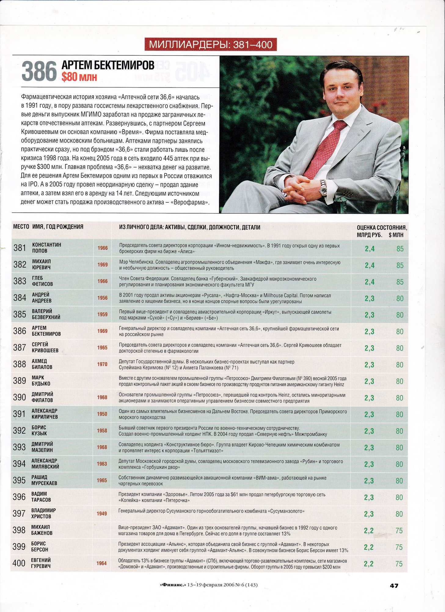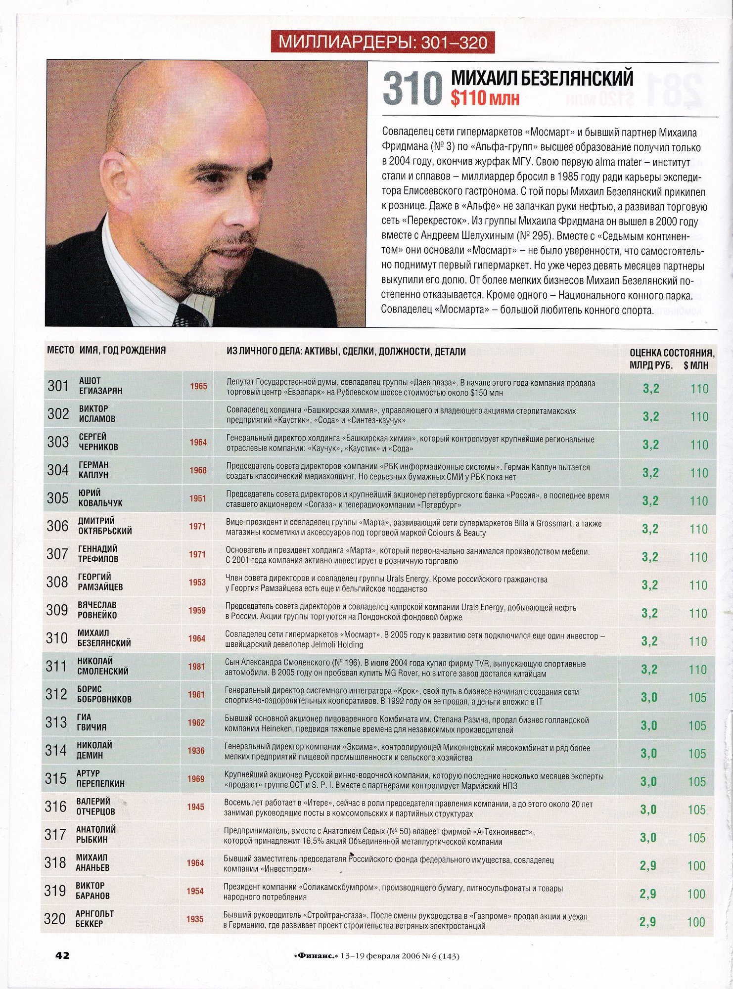 Журнал «Финанс.» №6 (143) 13-19 февраля 2006 — Миллиардеры-2006