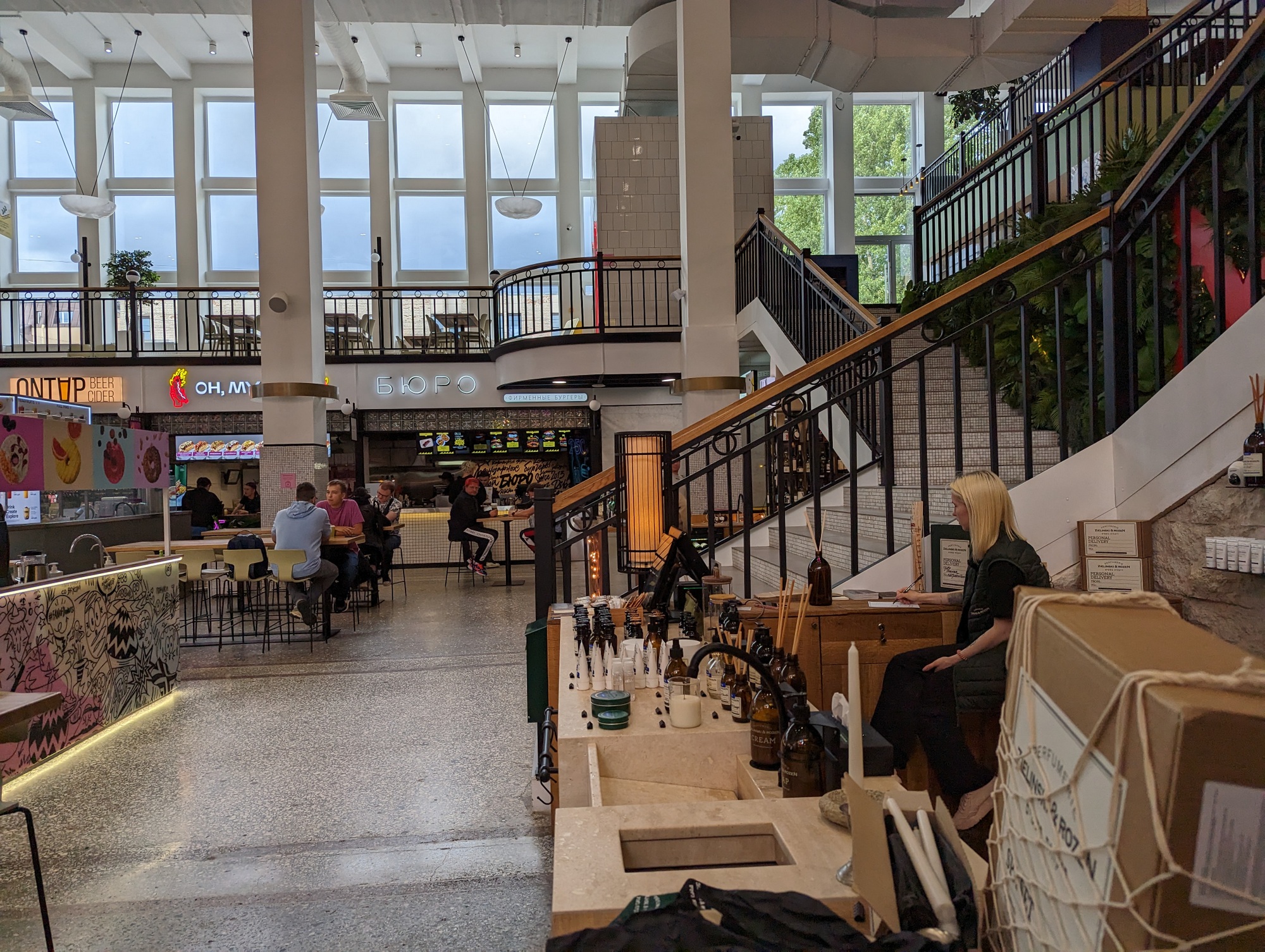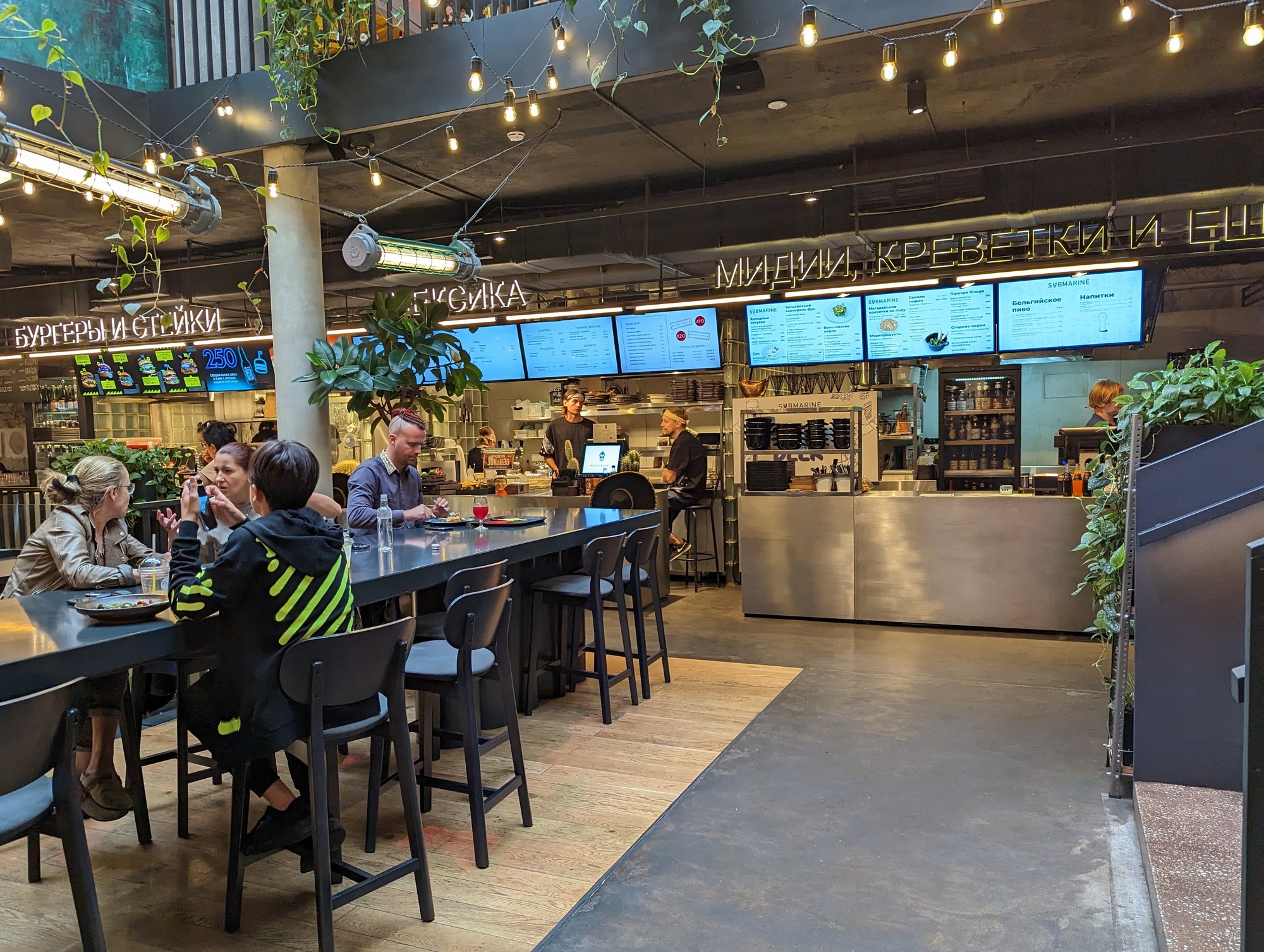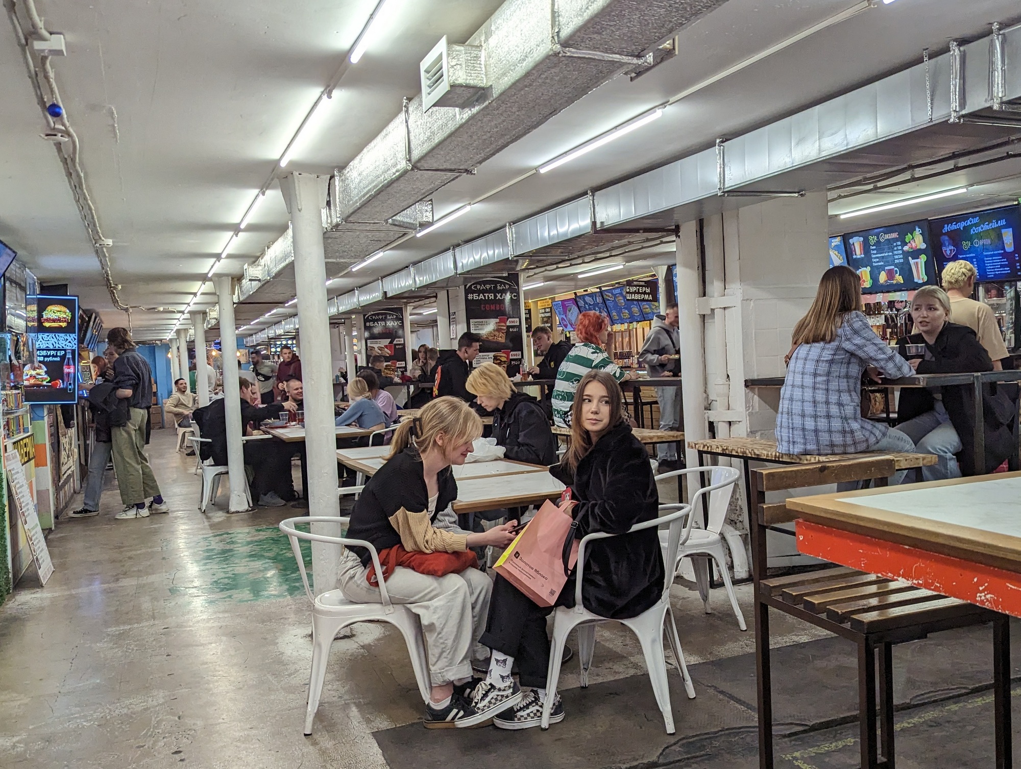 На закуску гастрорынок немного в стиле трэш, для молодёжи, в кластере «Этажи» на Лиговском проспекте.