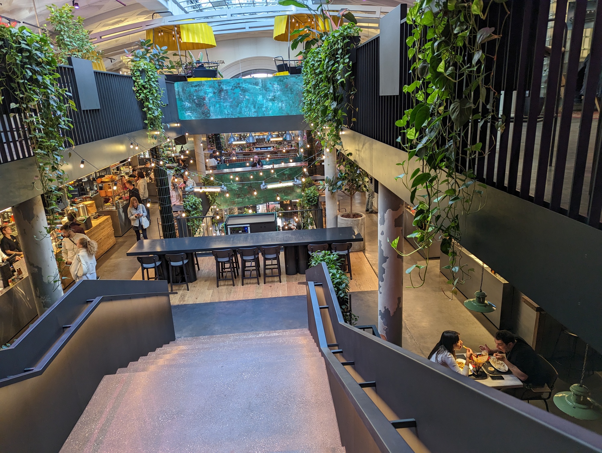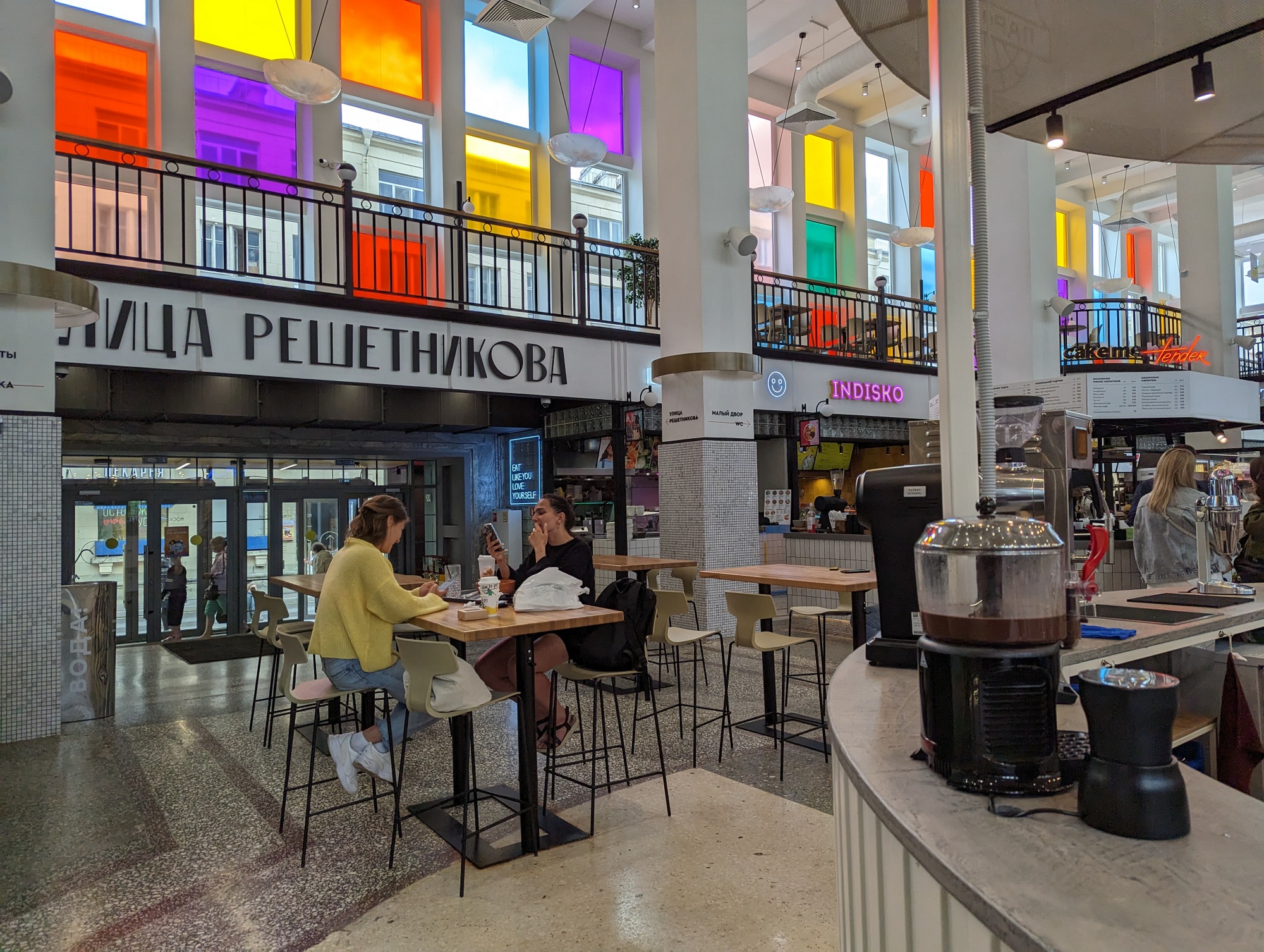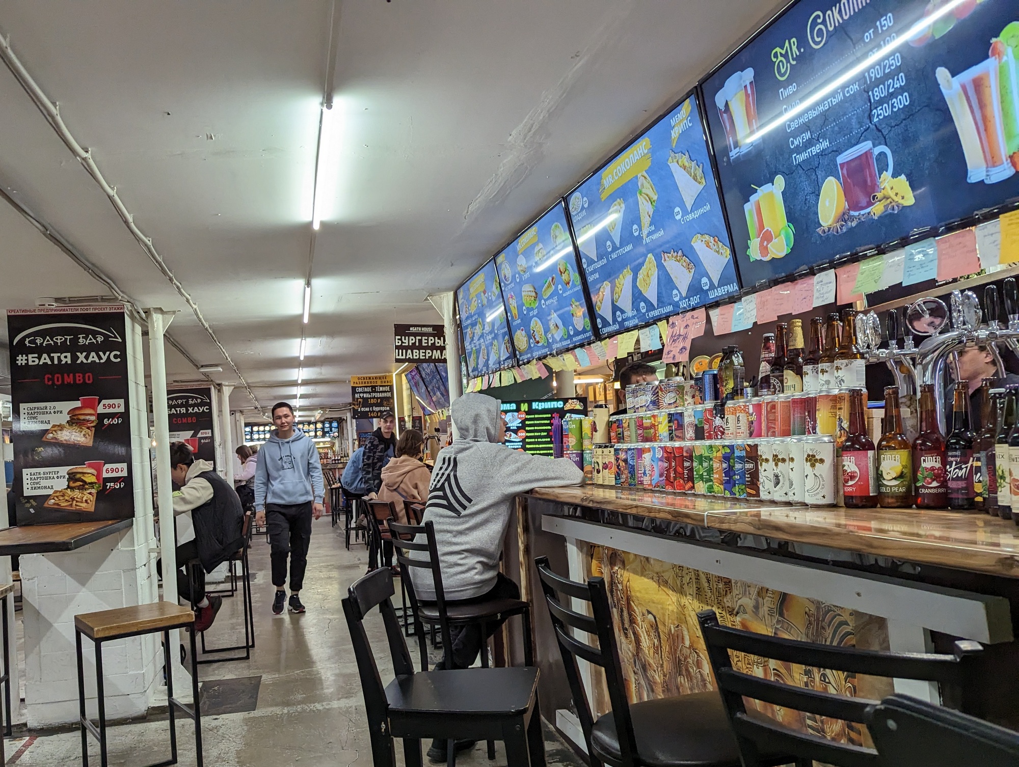На закуску гастрорынок немного в стиле трэш, для молодёжи, в кластере «Этажи» на Лиговском проспекте.