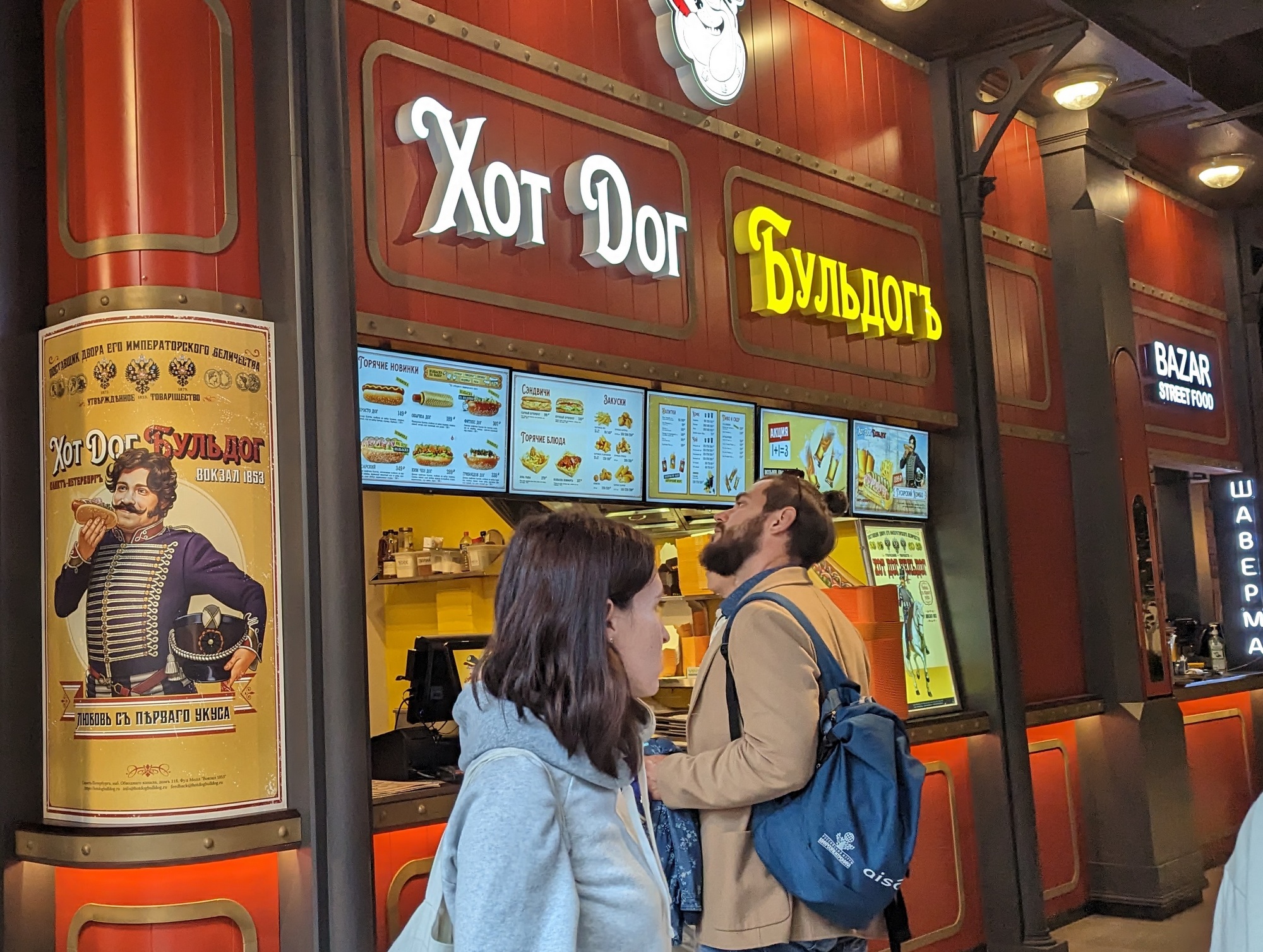 Cinnabon, Bomu, Сидоров Пролив, lili, Georgiani, Easy Hummus, Hagao, Bratski, Meat Group Burgers, Family Bistro Let’s Play, Станция мармеладная, Banka home, УНЕ, Hot Dog Bulldog, Мидийное место, PizzaClub, Чисто Питерский хот-дог, KFC, Bo, Годзи покушал, Yujin Express, Sweet Way, Fluffy Fluffy, TeaGo, Bazar Street Food, Burger Heroes, Pims, О, мой Боул, Пита Питер, The Indian Club, Middle, О!Эскимо, Азиаты Экспресс, Sapori d’Italia, Pinzeria by Bontempi, Bahroma, Пян-се, Токио-City, Muelle.