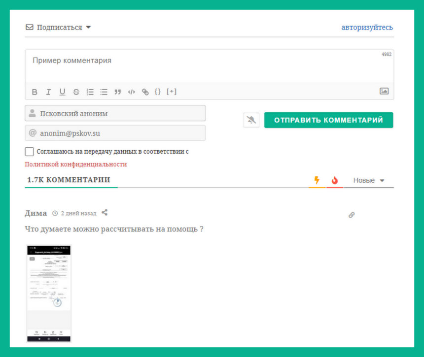 Во-вторых, аноним жалуется, что система комментирования wpDiscuz «предусматривает сбор и обработку персональных данных пользователей, в том числе имени (либо псевдонима), адреса электронной почты, IP-адреса и содержимого комментариев».