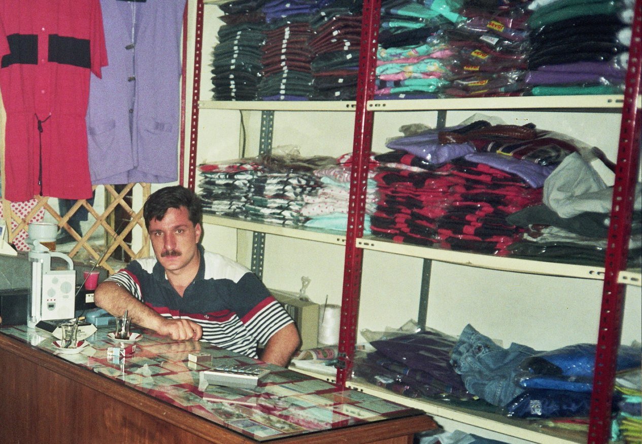 Ходовой товар — кожаные куртки, ультрамодные в то время. Семья будет жить впроголодь, но на куртку супруге скопит. Чтоб всё, как у людей. Покупали куртки по 70-80 долларов, продавали — по 150-200, Вот и весь бизнес. Также брали кожаные ботинки, текстиль, ремни с золотыми пряжками — эпоха группы «Комбинация» требовала эстетических жертв.