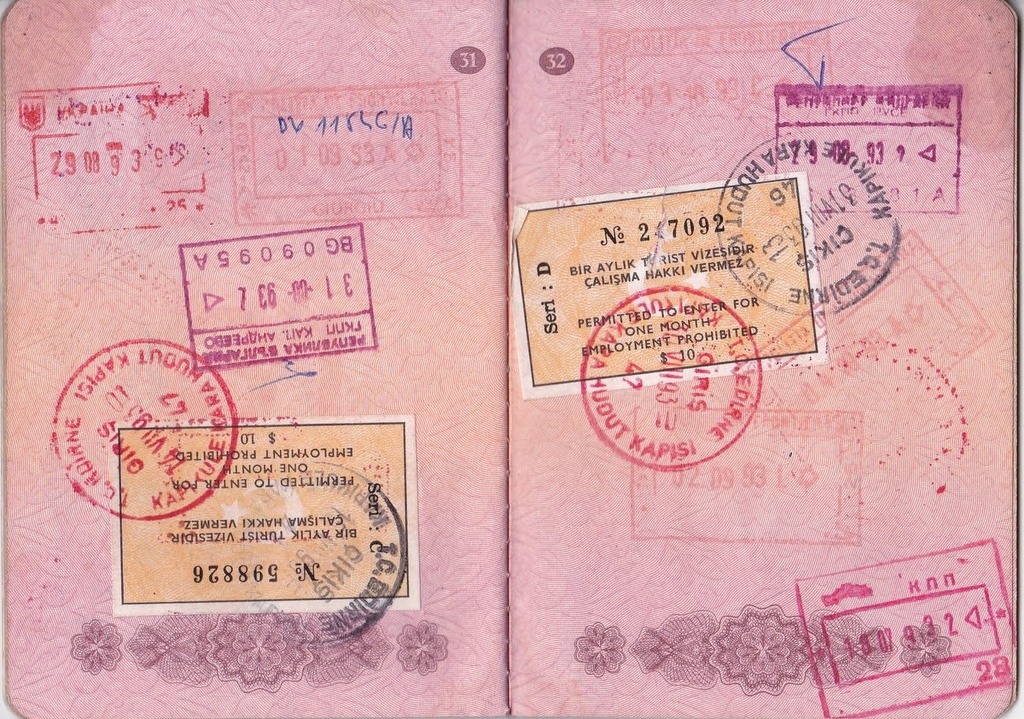 Погуляв по Бухаресту, идём на автобус, на котором написано Murat Ltd. Билет стоит 10 долларов. Идёт это чудо, в котором ночью можно сдохнуть от холода, через всю Болгарию часов двенадцать. Турецкую визу заранее получать не надо. На границе платишь 10 долларов и тебе в паспорт приклеивают оранжевую марку со словами «Bir aylik turist vizesi. Calisma hakki vermez» («Одномесячная туристическая виза. Не предоставляет права на работу»).