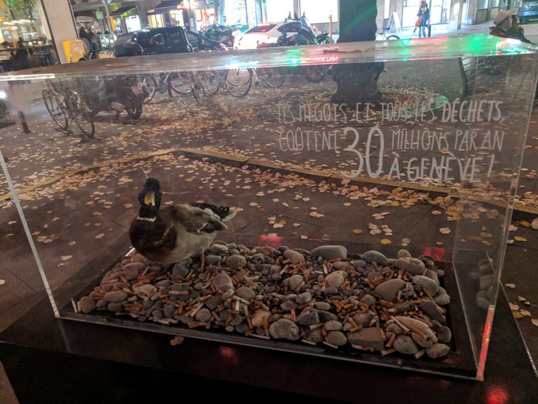 Жители Женевы бросают слишком много окурков на улицах, и дешевле убеждать их этого не делать, чем платить дополнительные деньги за уборку.