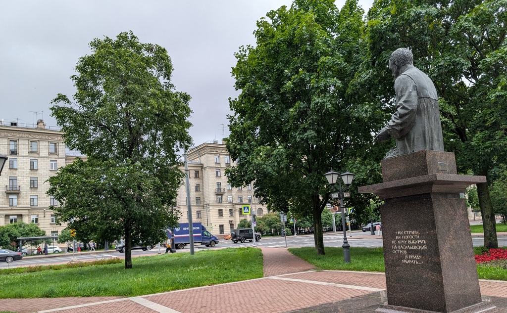 Метров через 300 от ДК имени Кирова, рядом с Большим проспектом, вы увидите памятник Анатолию Собчаку.