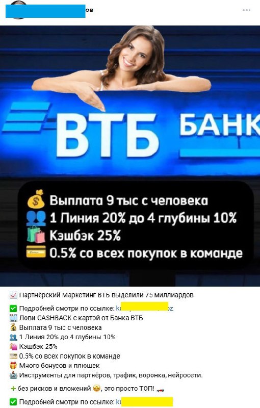 MLM-проект «Лови кэшбек» официально продвигает услуги банка ВТБ?