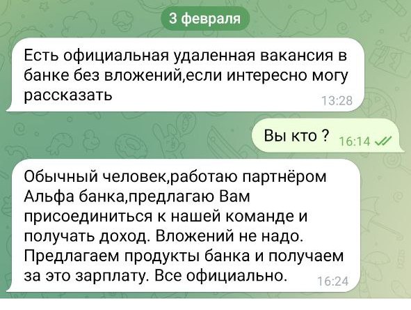 ВТБ — не первый, кто привлёк сетевиков (MLM) к продвижению банковских продуктов. Годом ранее это сделал Альфа-банк. Программа называется «Свой в Альфе». На практике «партнёры Альфа-банка» могут предлагать «зарплату» спамом в личные сообщения (см. снимок экрана).