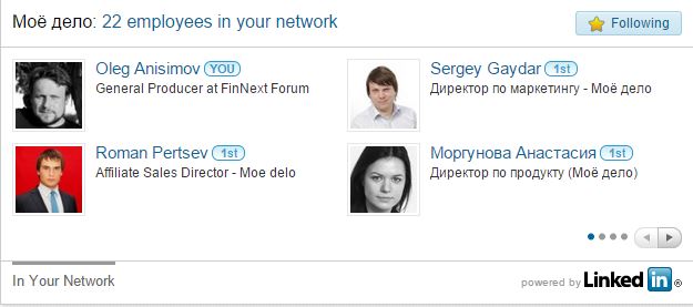 Вот маленький виджет, показывающий, сколько человек следят за вашей компанией в LinkedIn: